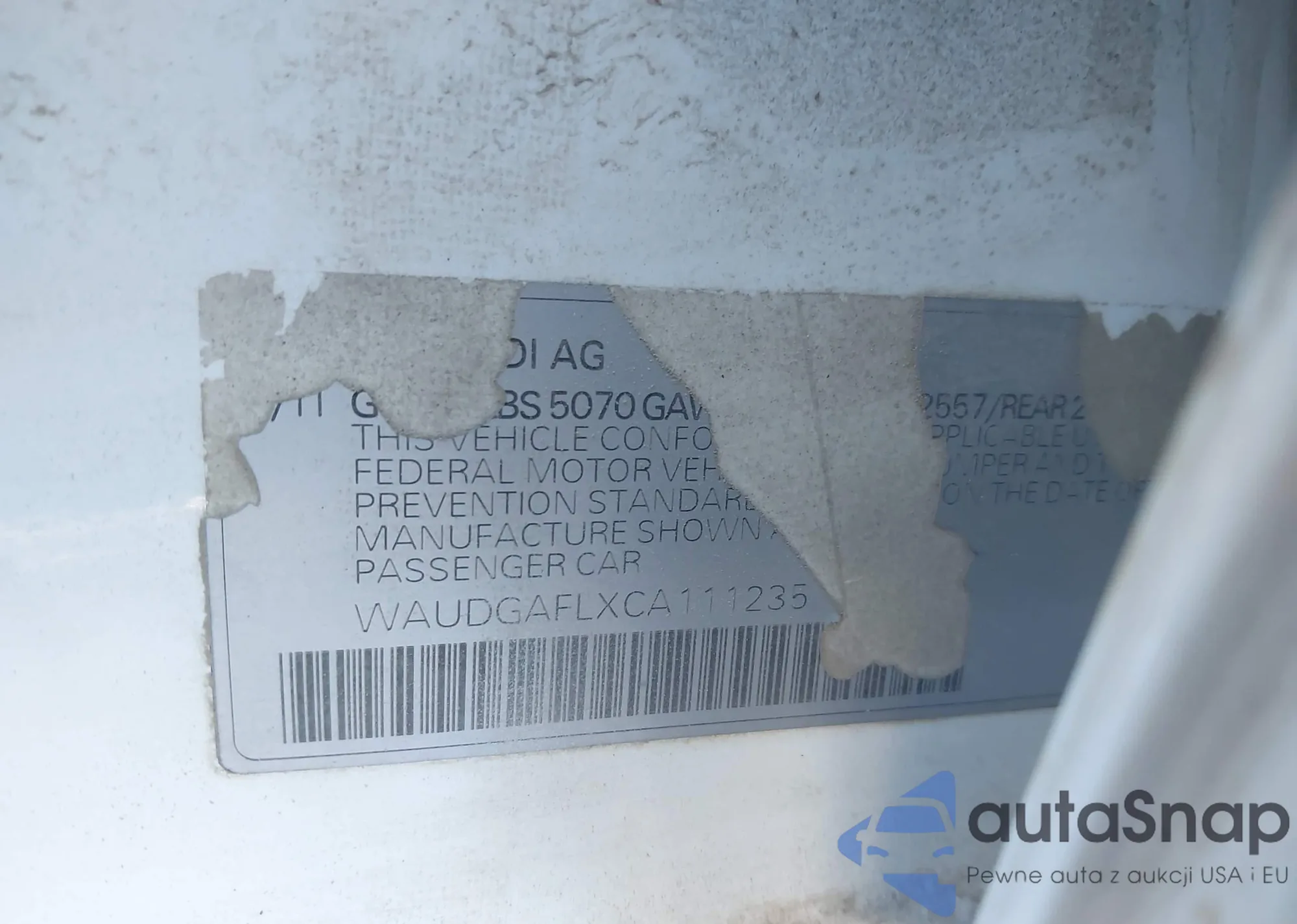 • VIN WAUDGAFLXCA111235