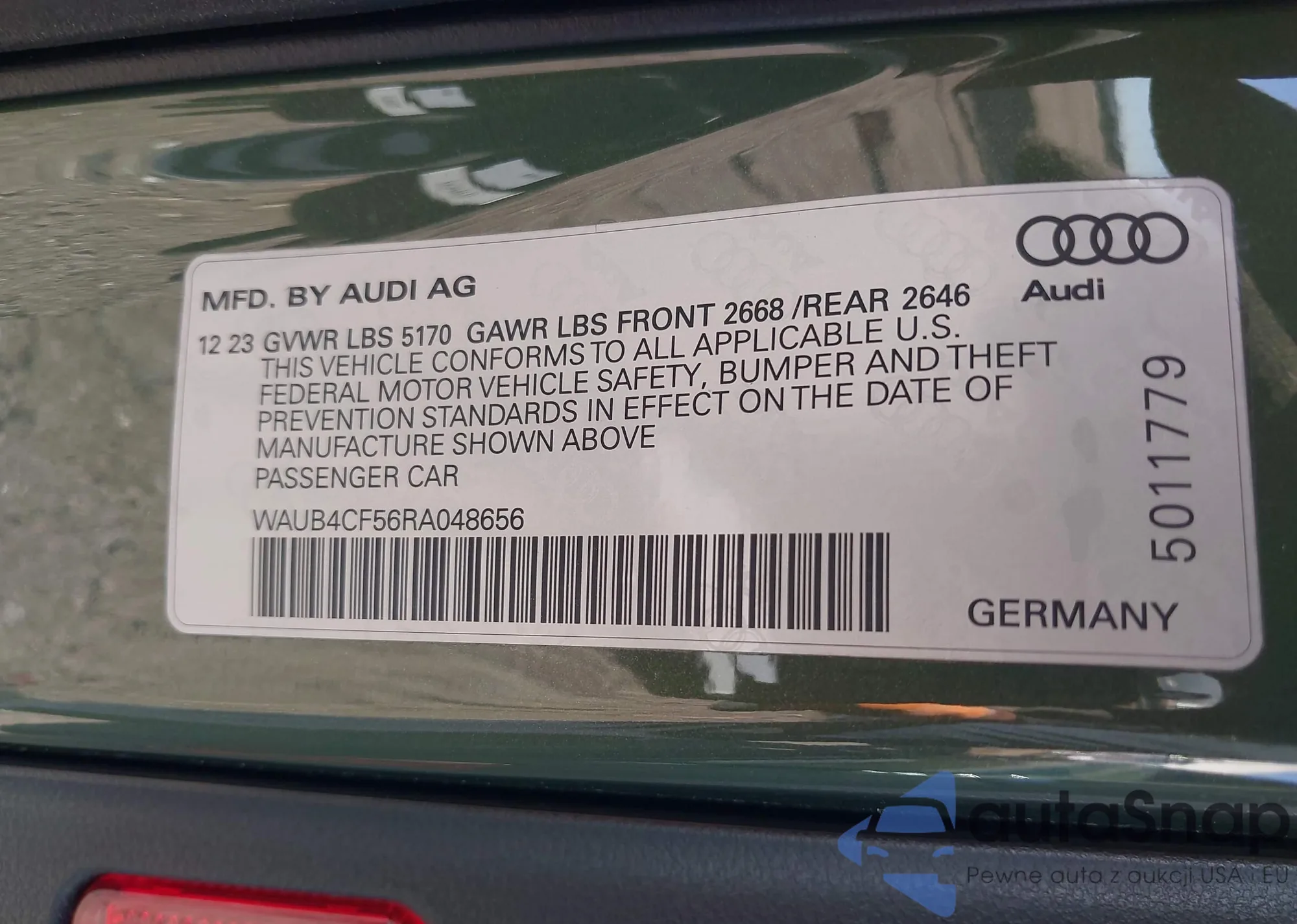 • VIN WAUB4CF56RA048656