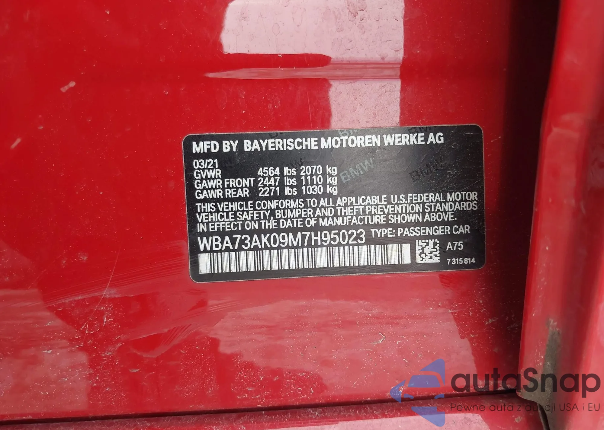 • VIN WBA73AK08M7J57441