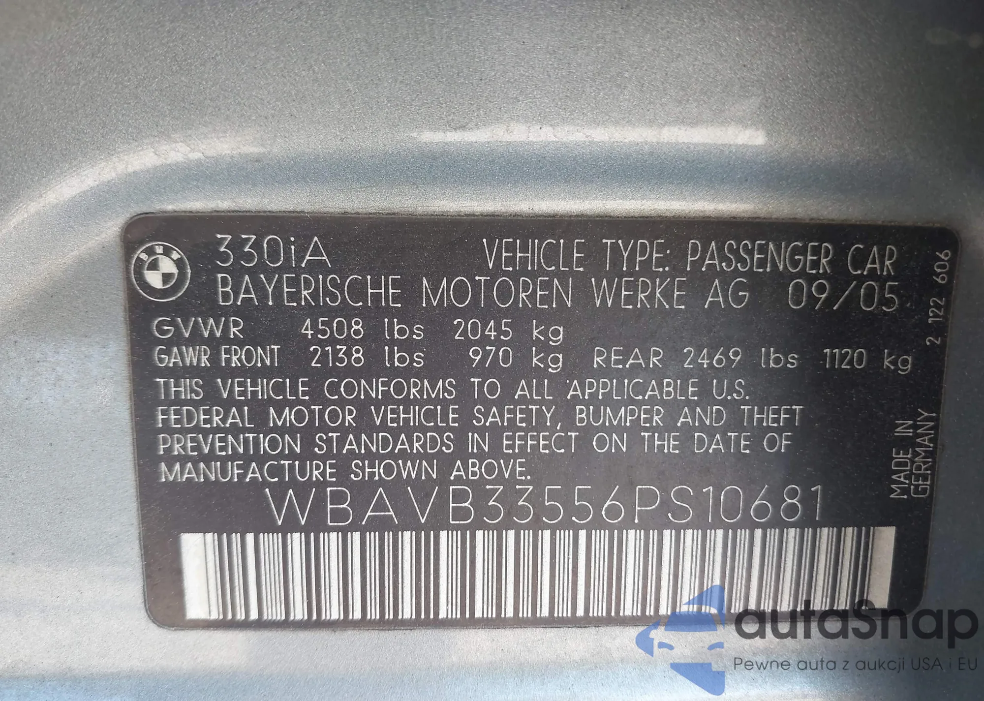 LOT: 44251327 VIN: WBAVB33556PS10681