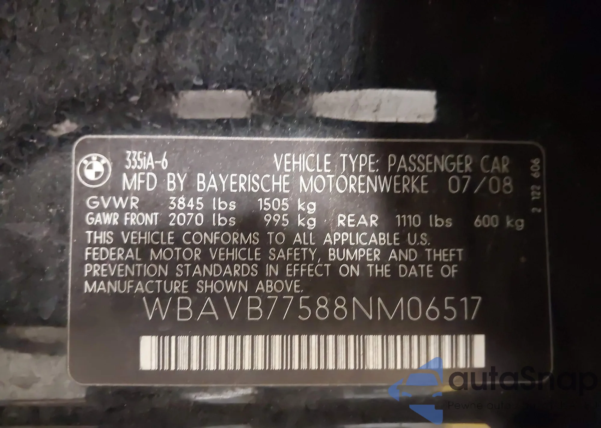 • VIN WBAVB77588NM06517