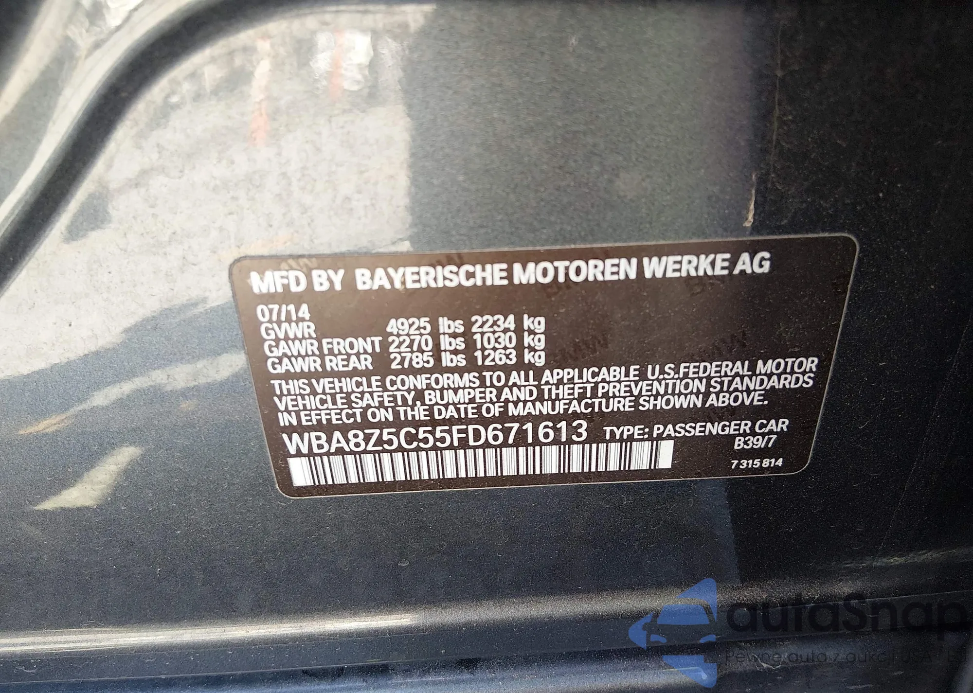 • VIN WBA8Z5C55FD671613