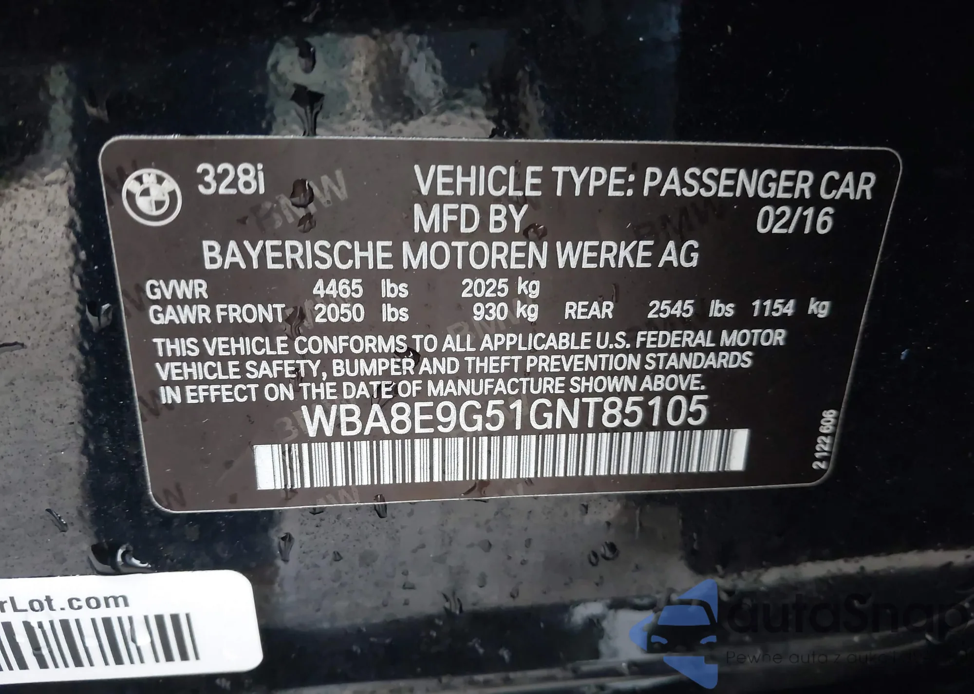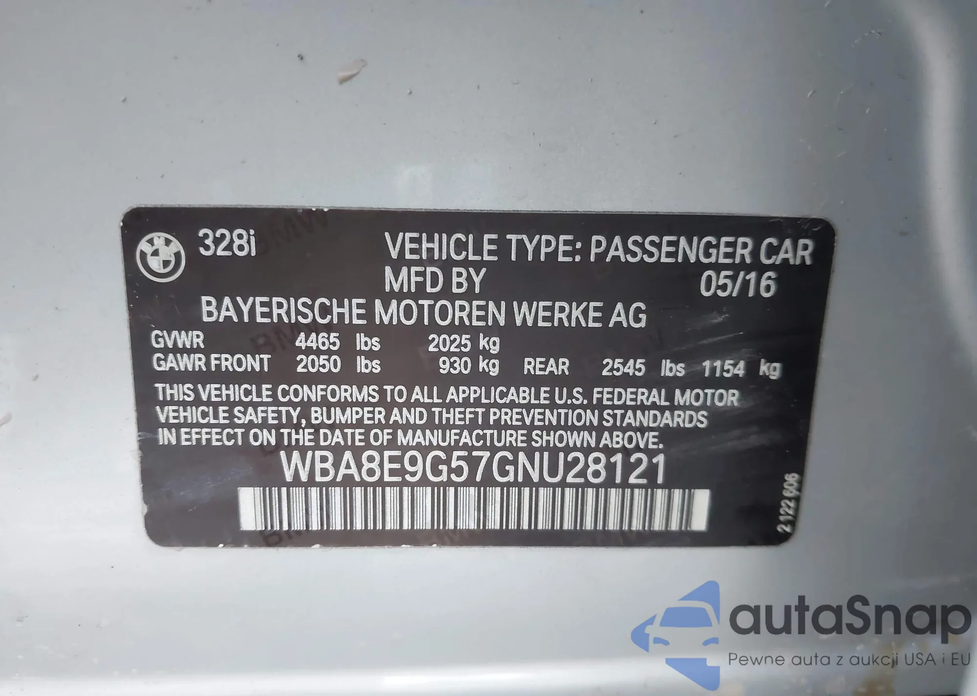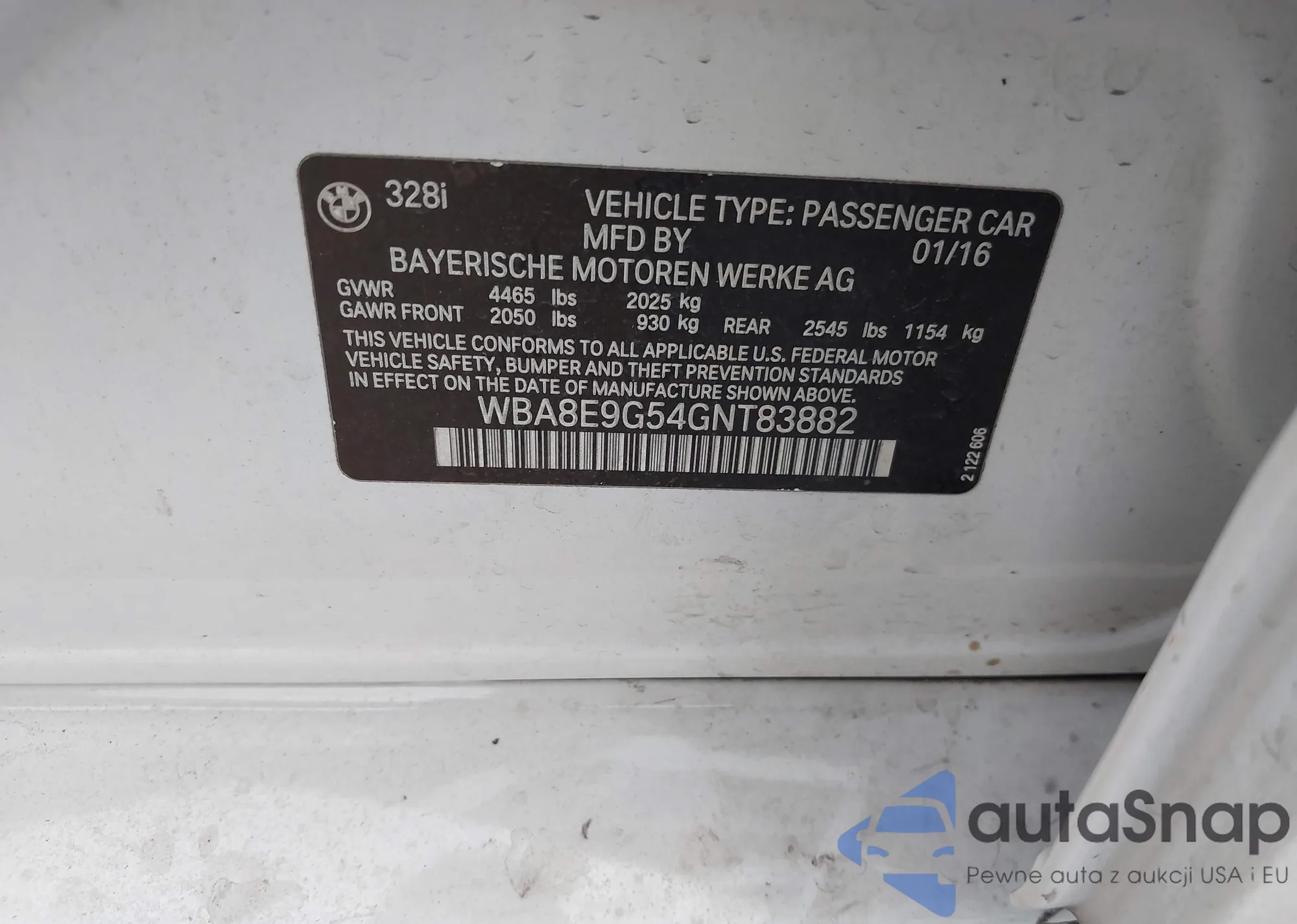 LOT: 44118908 VIN: WBA8E9G57GNU28121