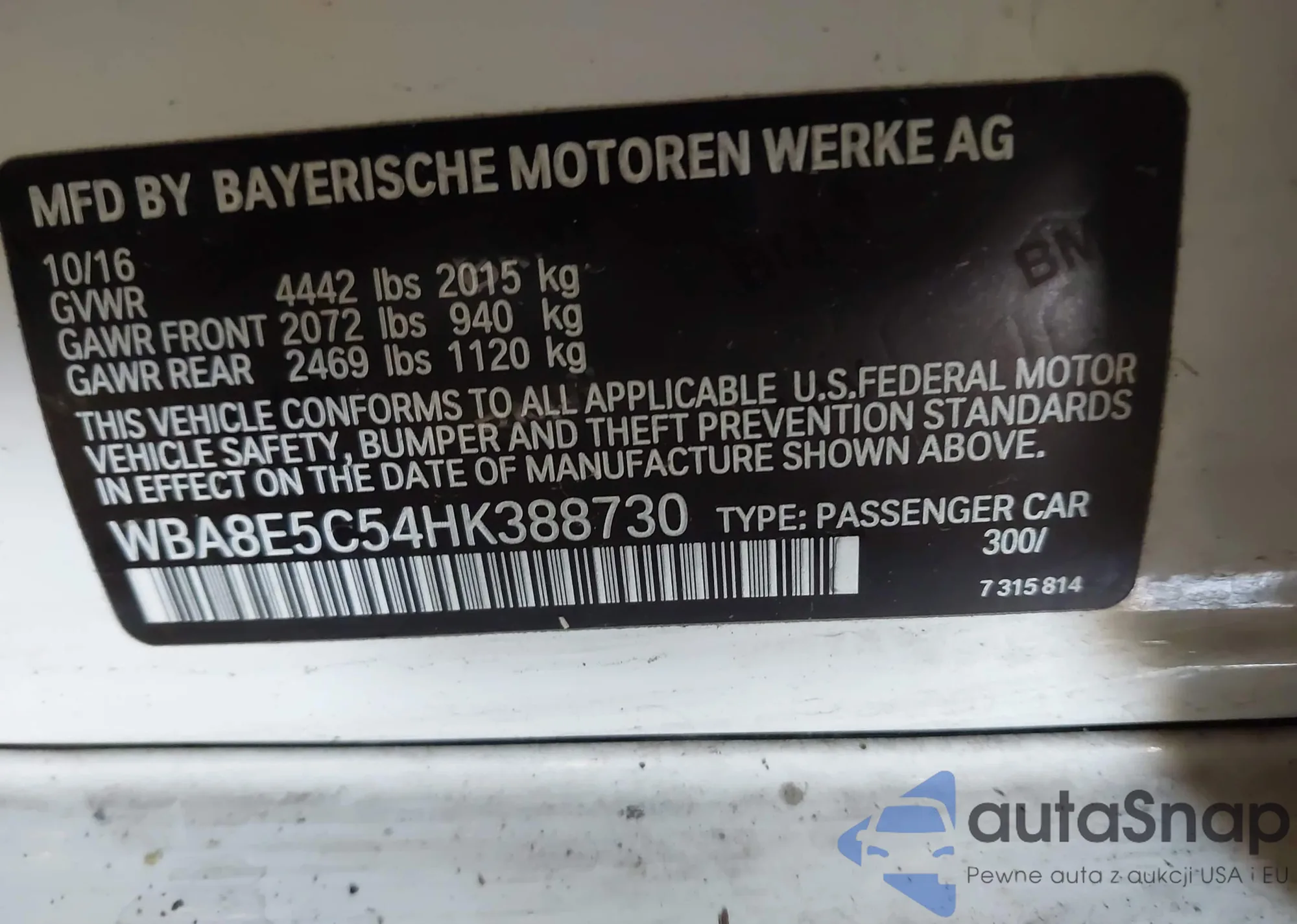• VIN WBA8E3C50GP974606