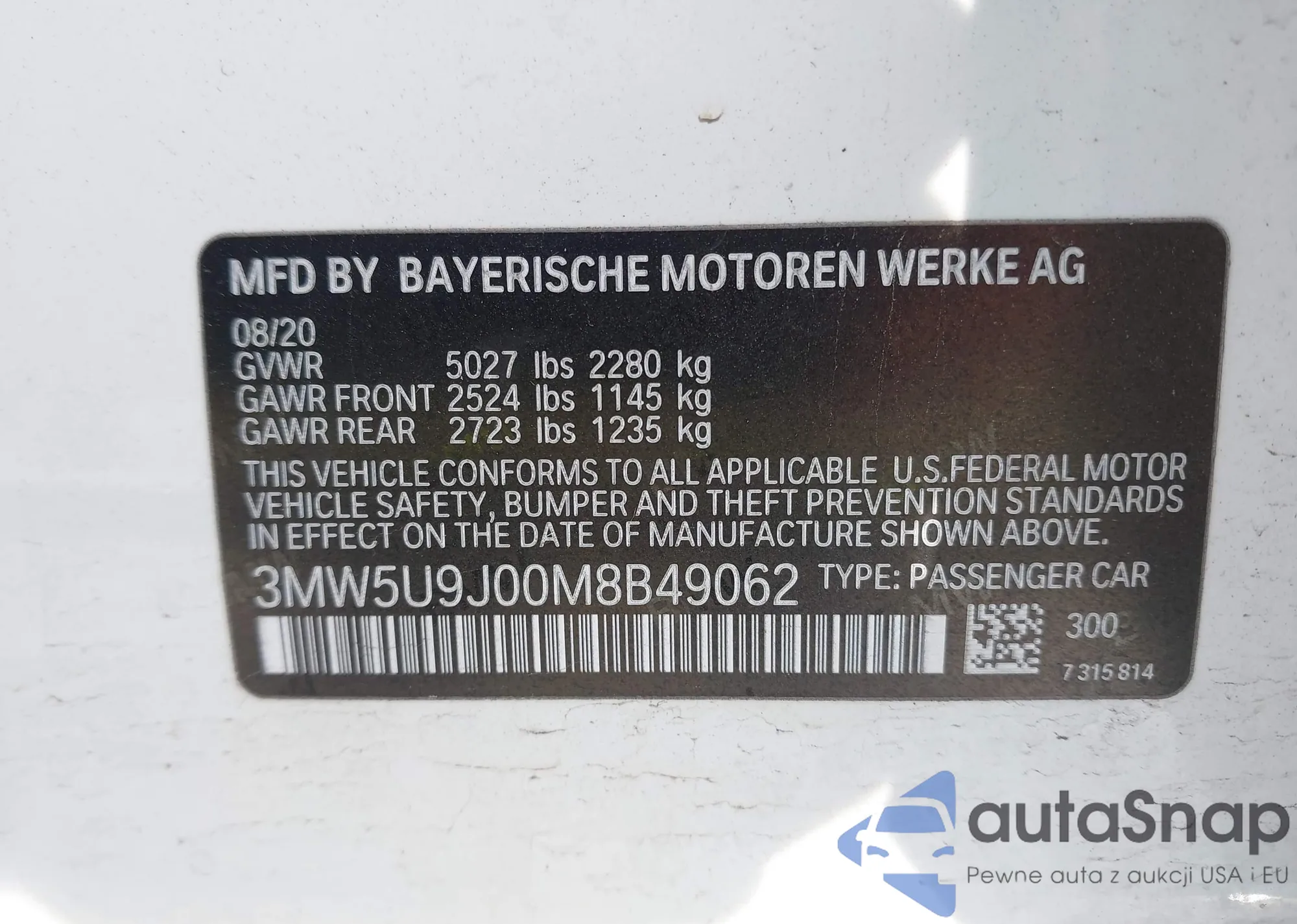 • VIN 3MW5U9J00M8B49062