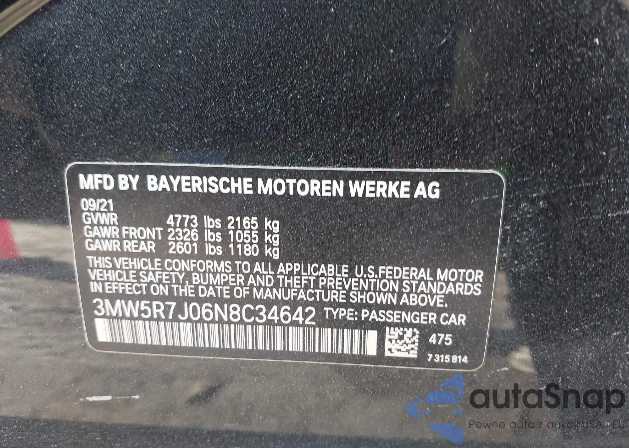 • VIN 3MW5R7J06N8C34642