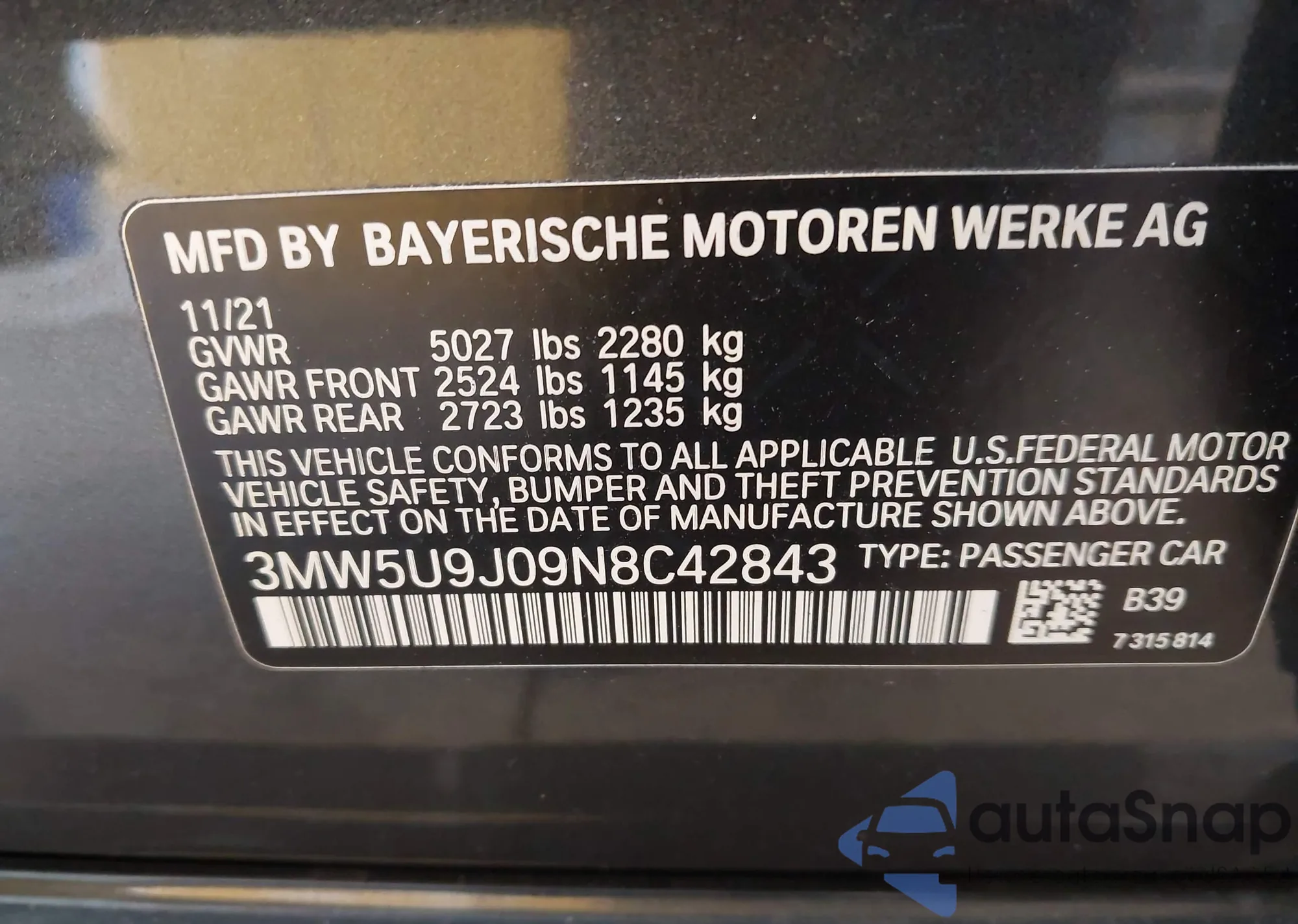 • VIN 3MW5U9J09N8C42843