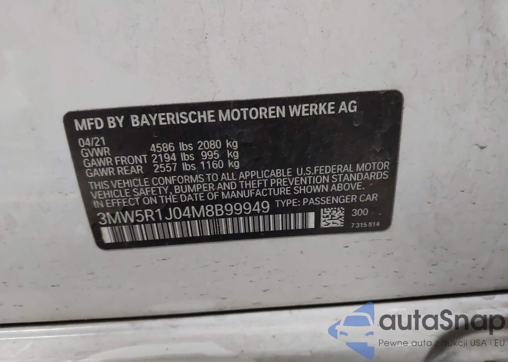 LOT: 44310685 VIN: 3MW5R1J04M8B99949