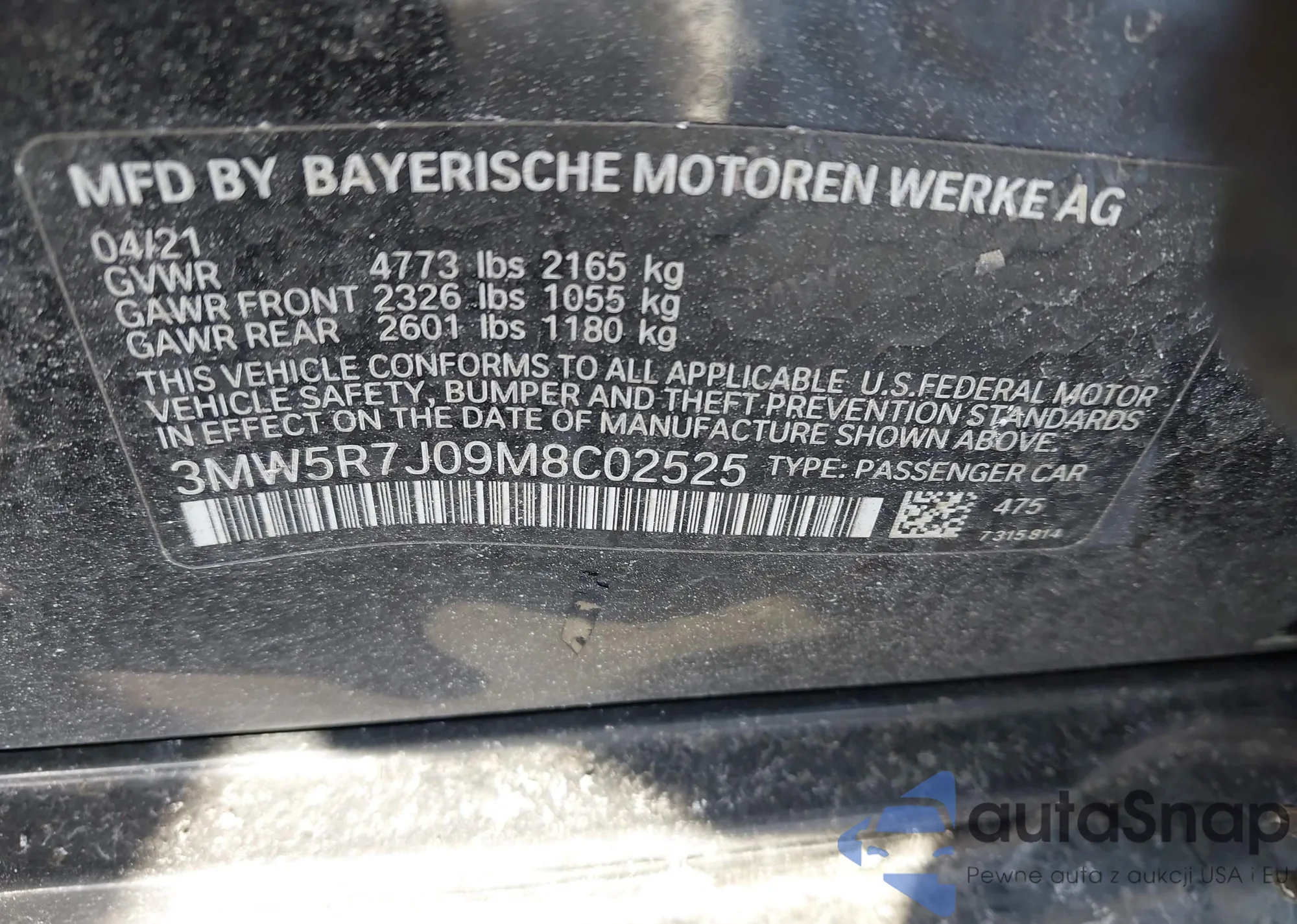 LOT: 44323323 VIN: 3MW5R7J09M8C02525