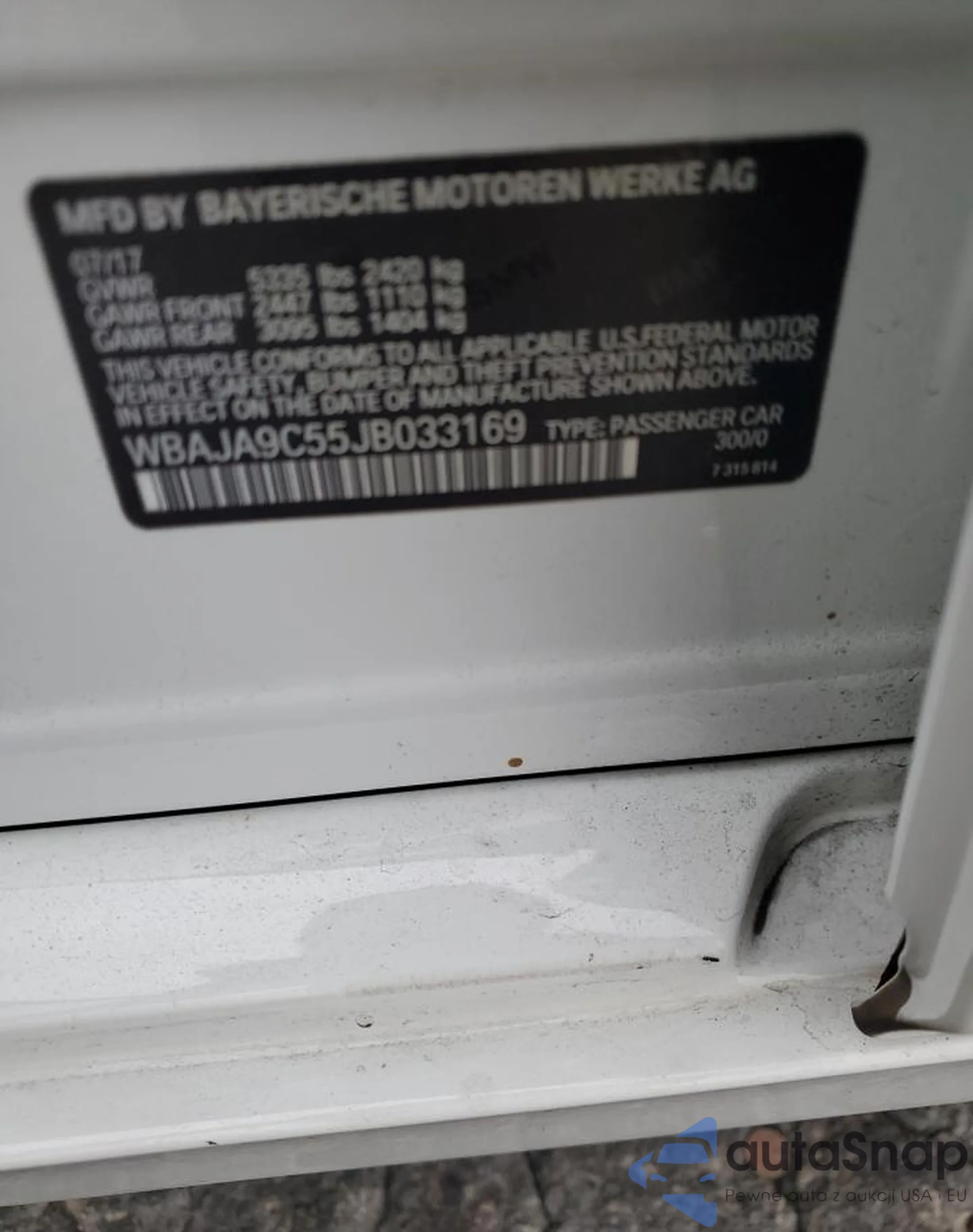LOT: 86700045 VIN: WBAJA9C55JB033169