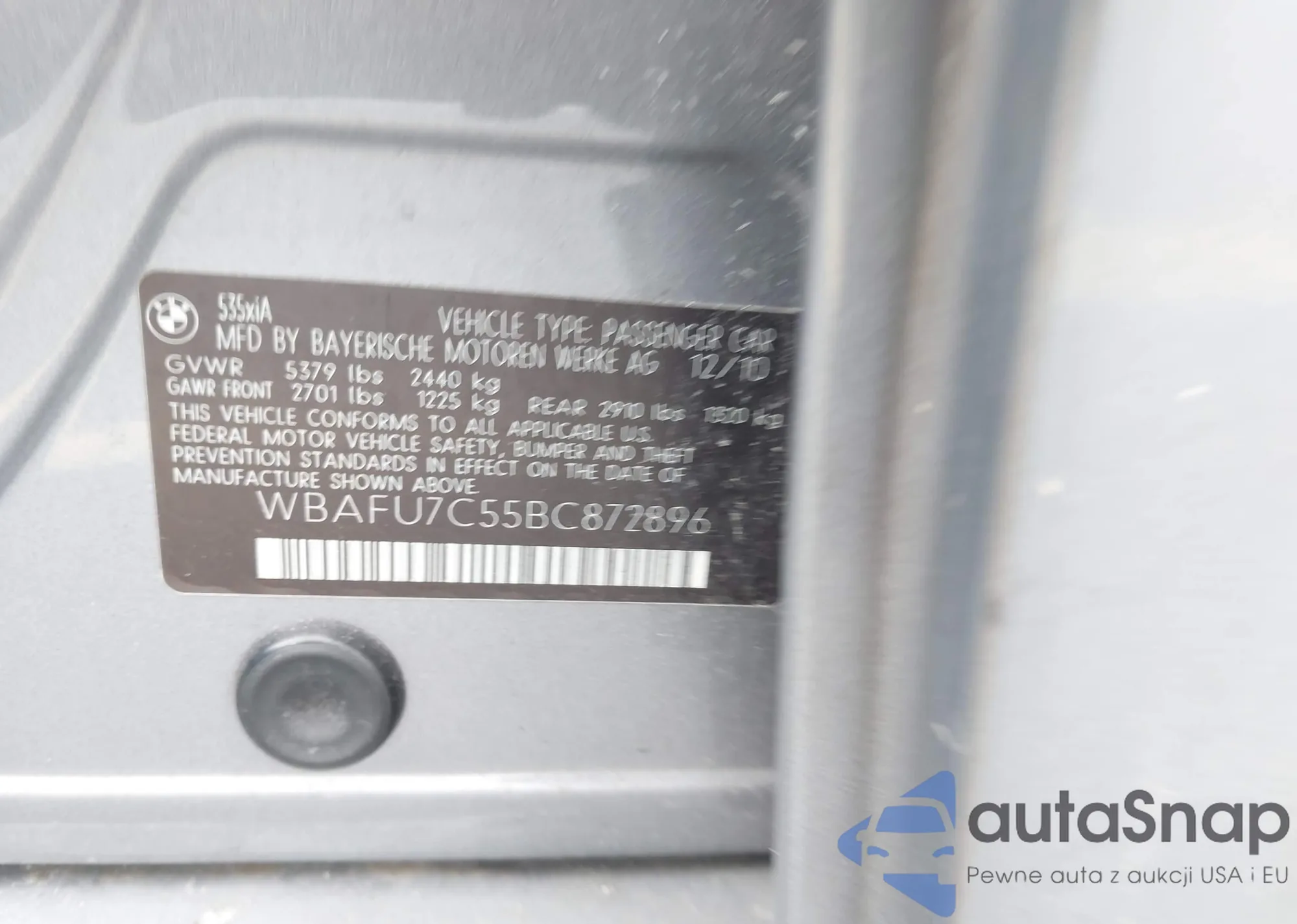 LOT: 44214477 VIN: WBAFU7C55BC872896