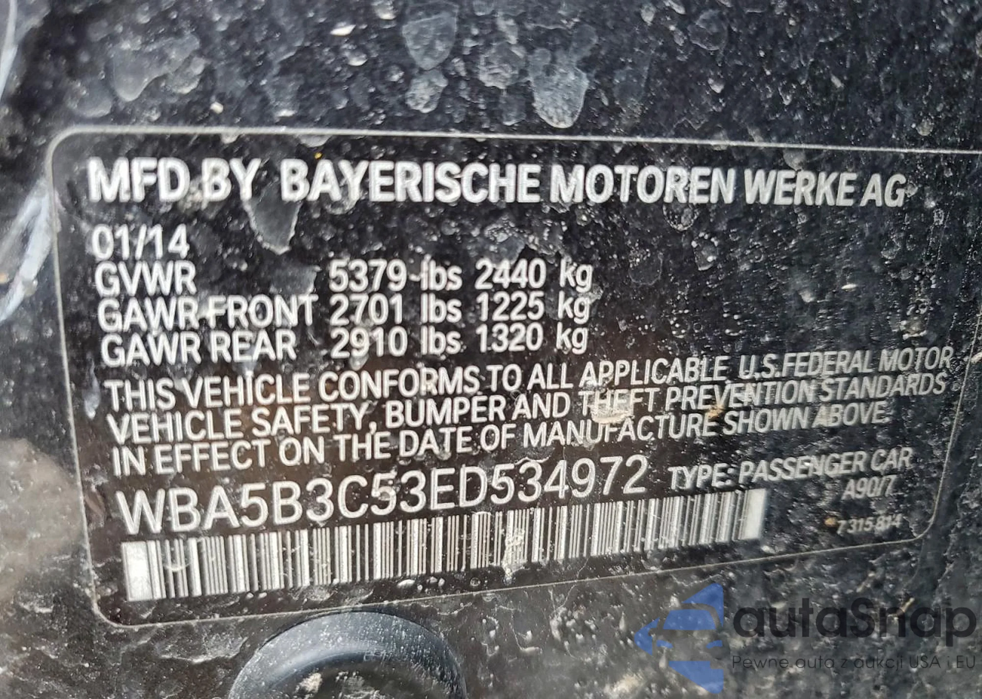 • VIN WBA5B3C53ED5342