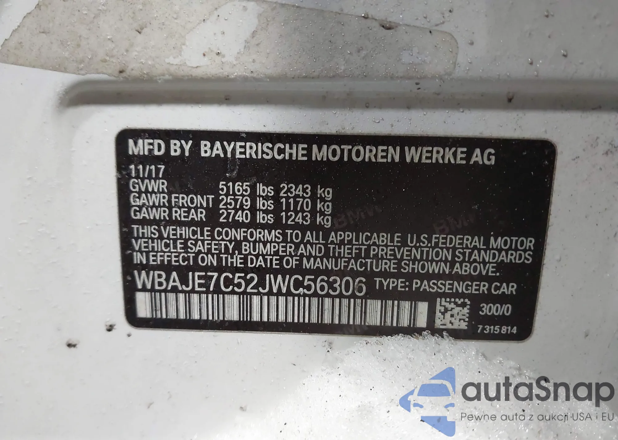 LOT: 44241153 VIN: WBAJE7C52JWC56306