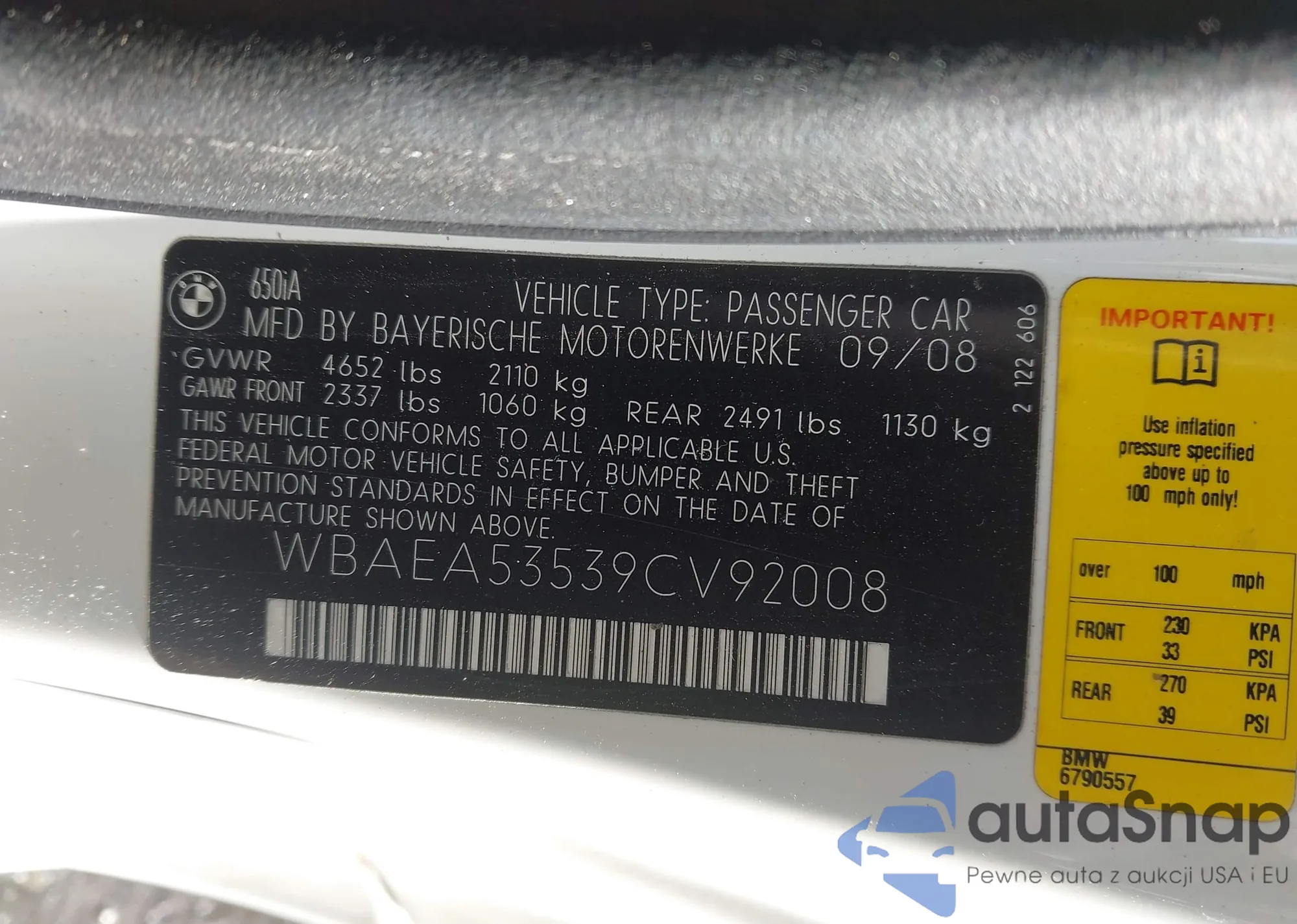 • VIN WBAEA53598CV91461