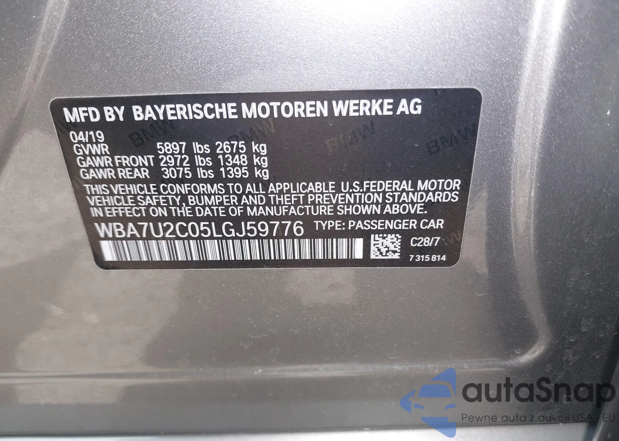 • VIN WBA7U2C05LGJ59776