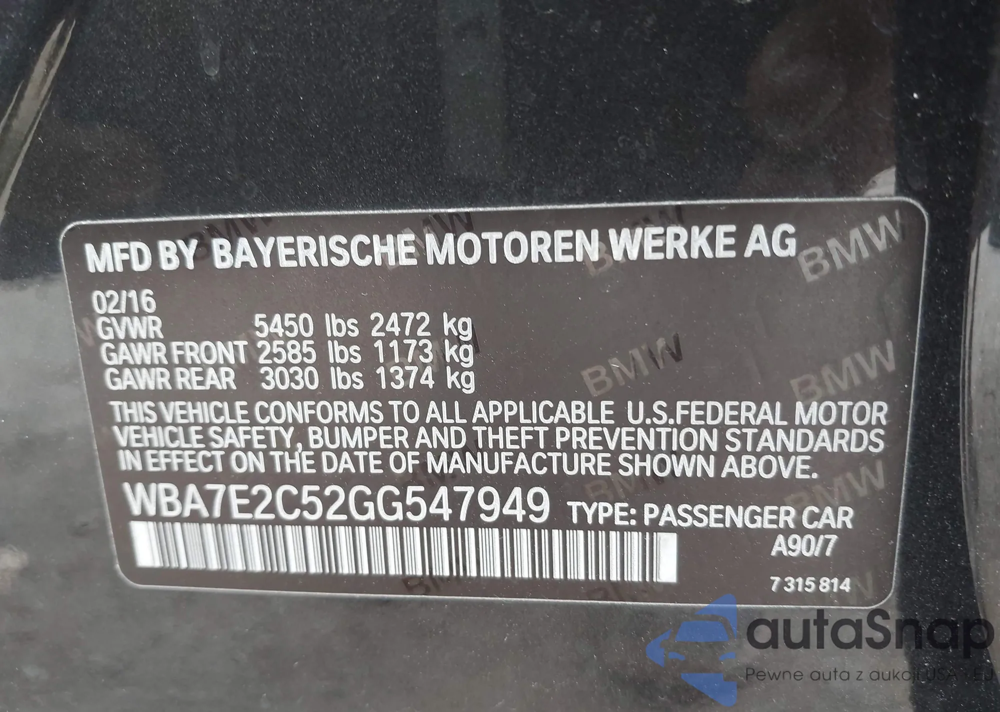 • VIN WBA7E2C52GG547949