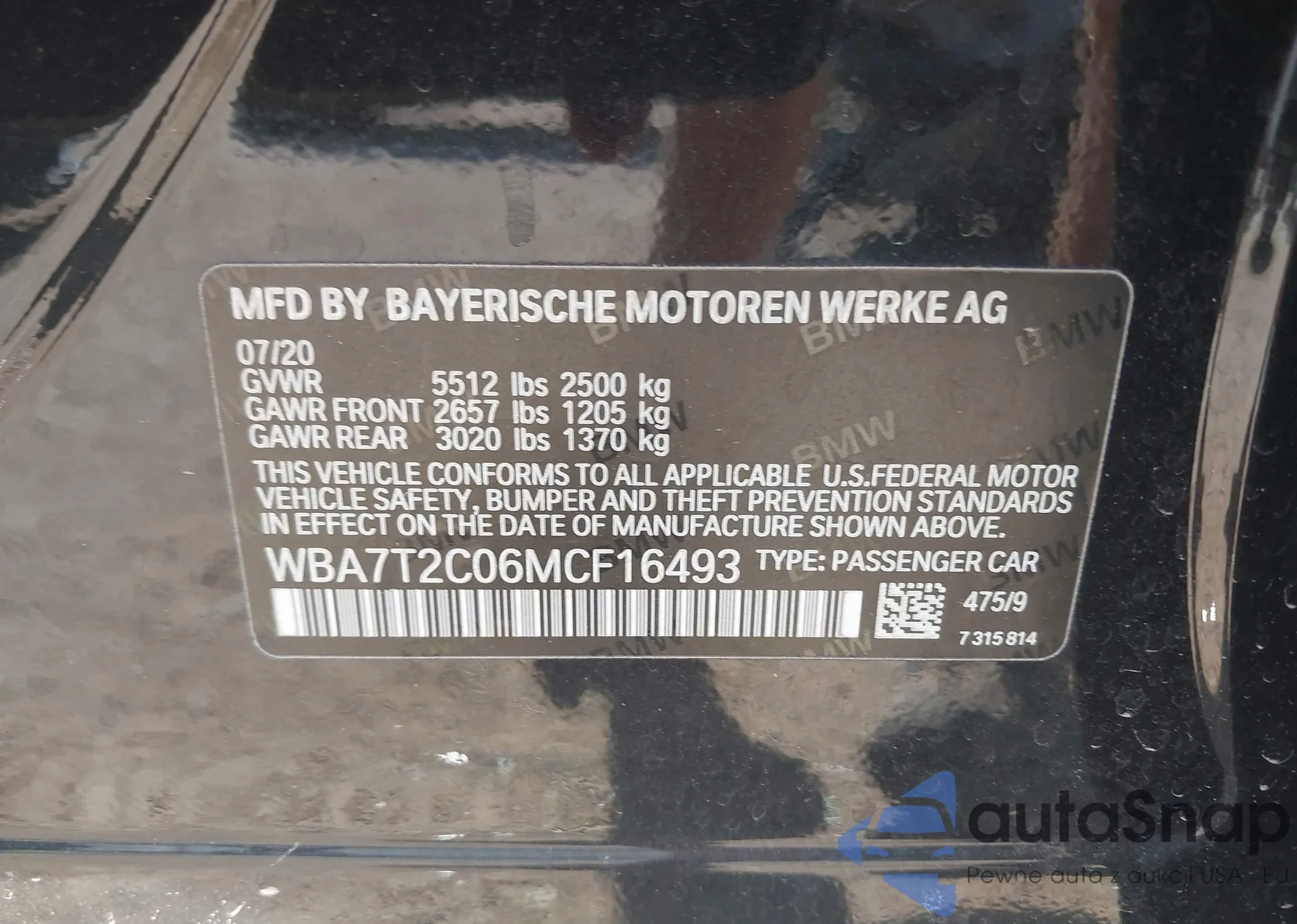 • VIN WBA7T2C06MCF16493