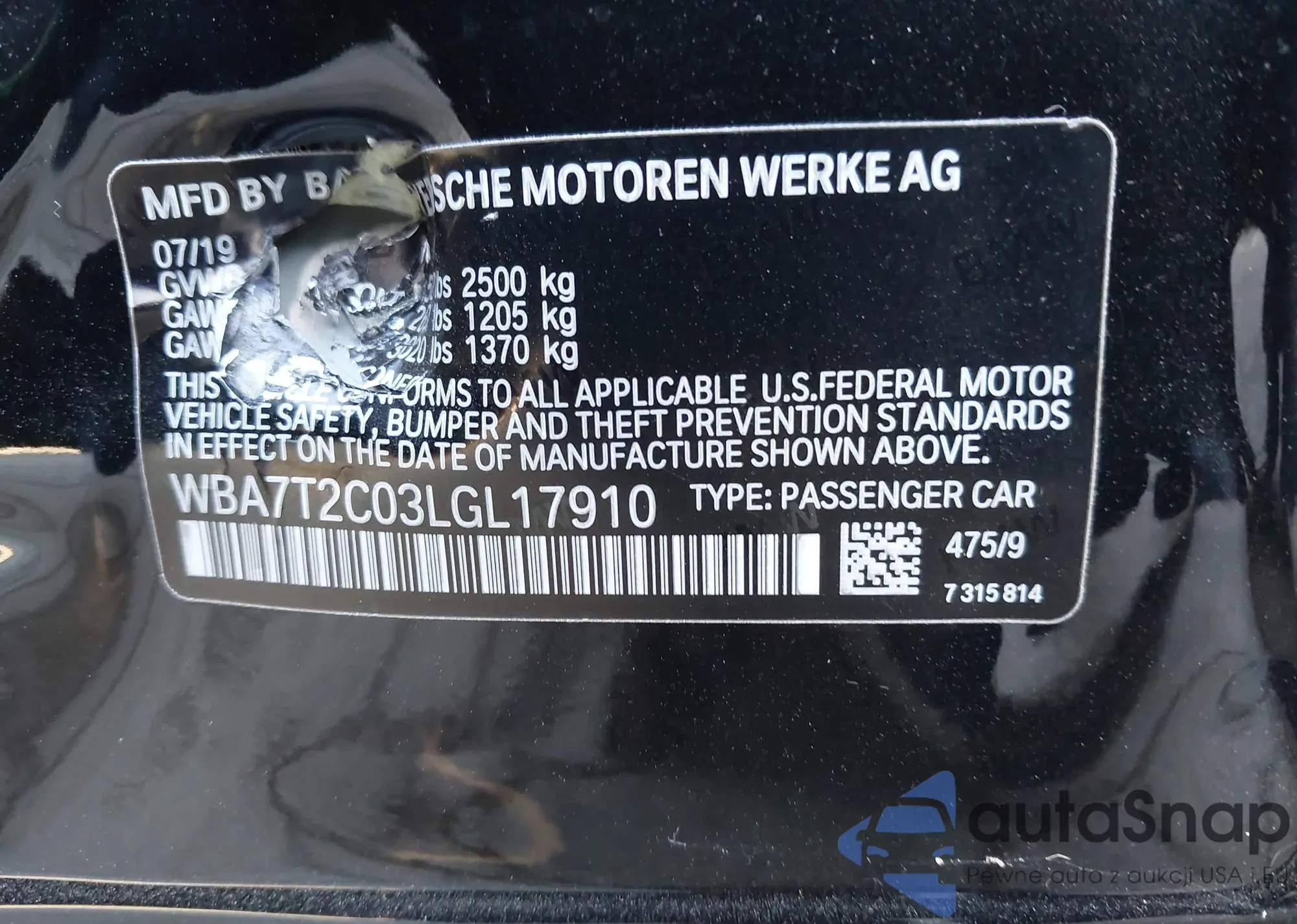 • VIN WBA7T2C03LGL17910