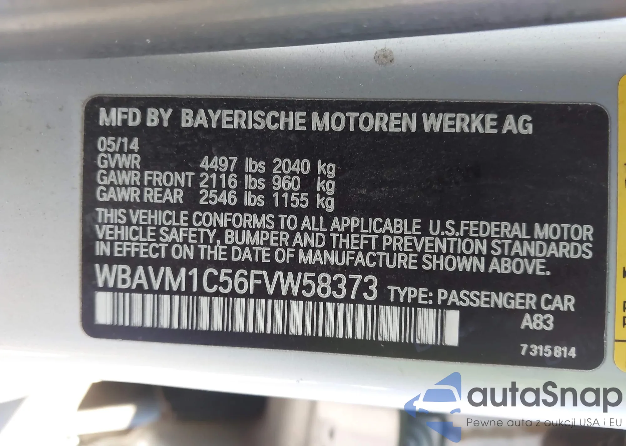 • VIN WBAVM1C56FVW58373