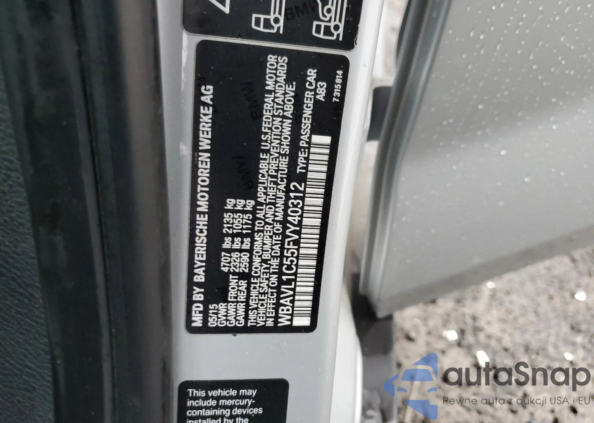 LOT: 77886483 VIN: WBAVL1C55FVY40312