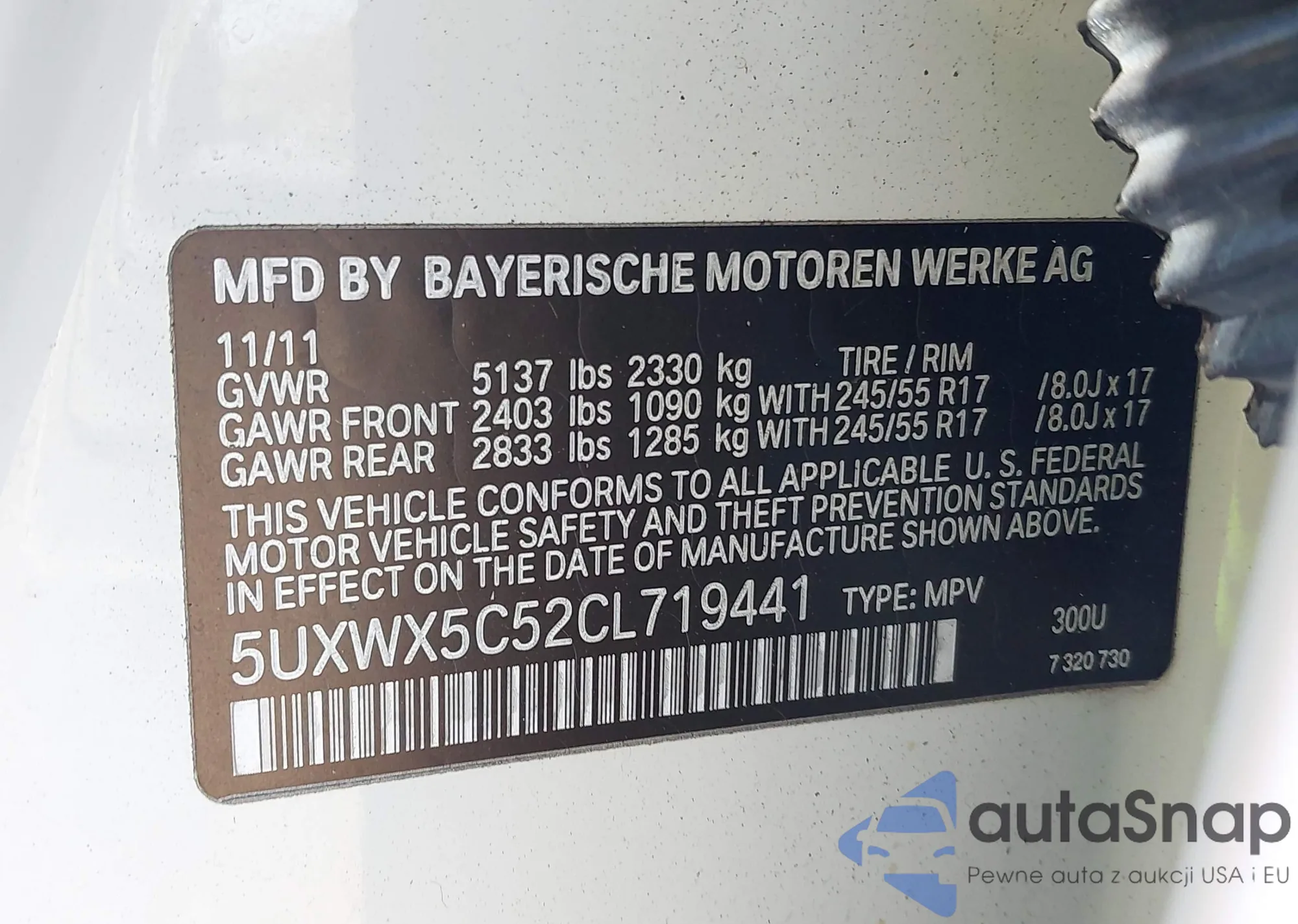 • VIN 5UXWX9C5XD0A32205