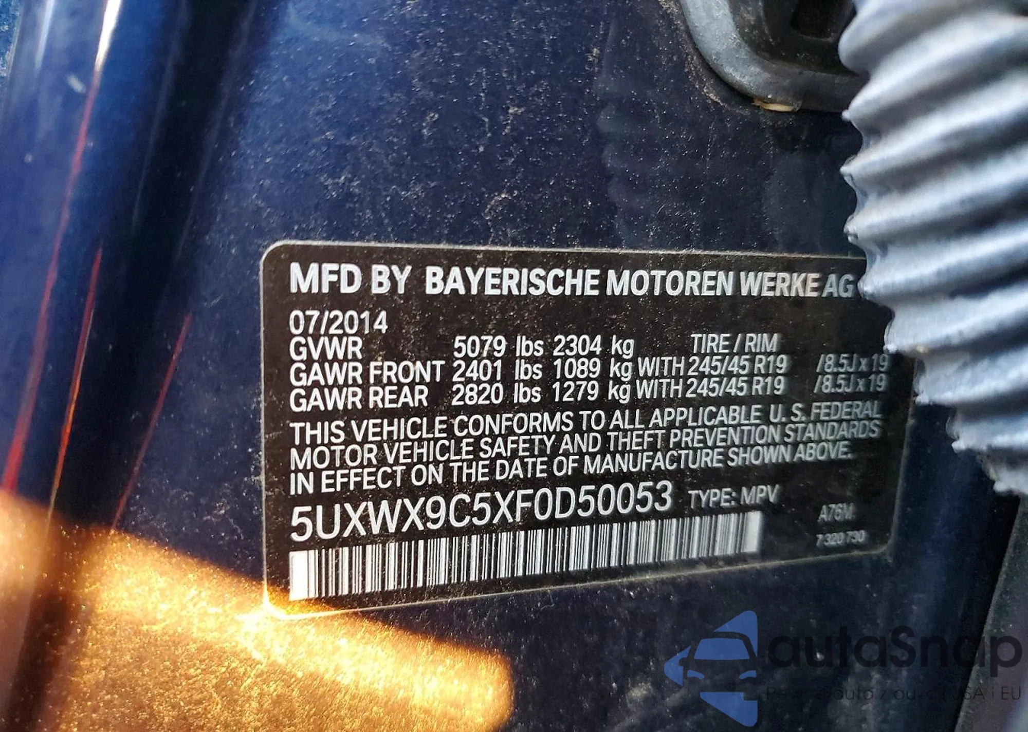 • VIN 5UXWX9C50F0D49722