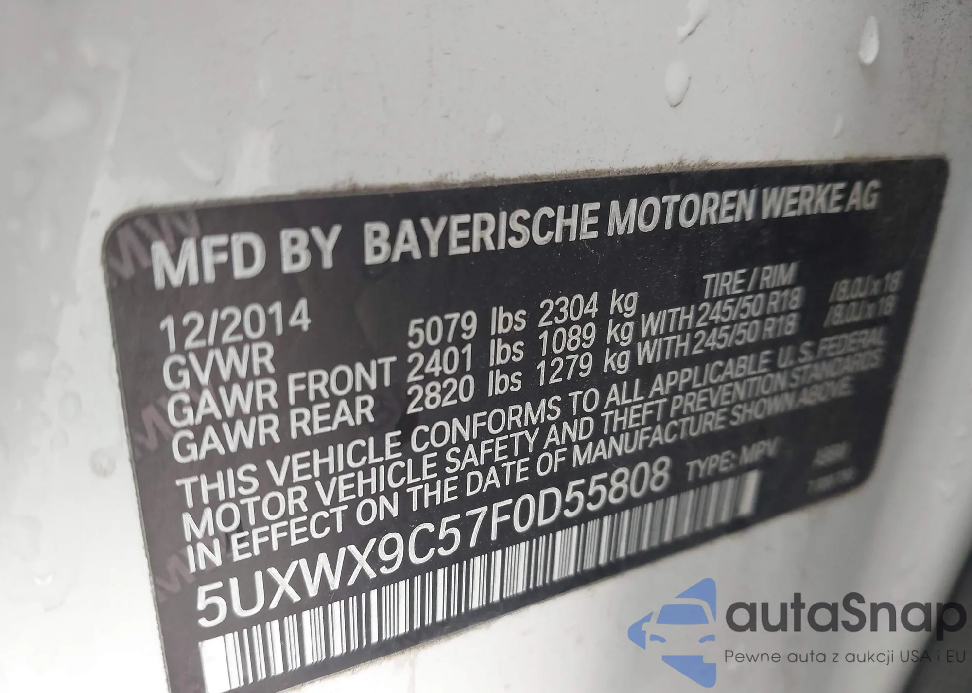 • VIN 5UXWX9C57F0D55808