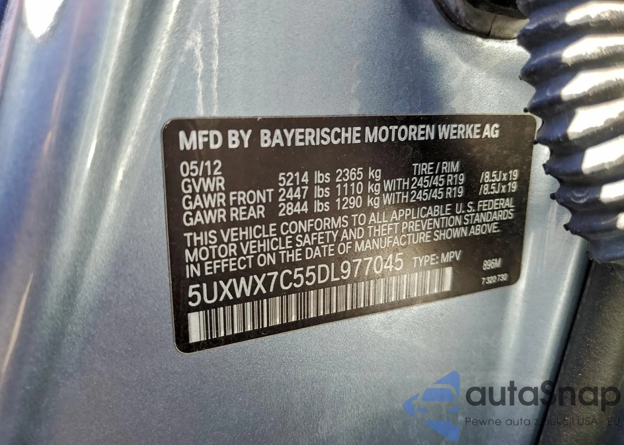 • VIN 5UXWX7C55DL977045