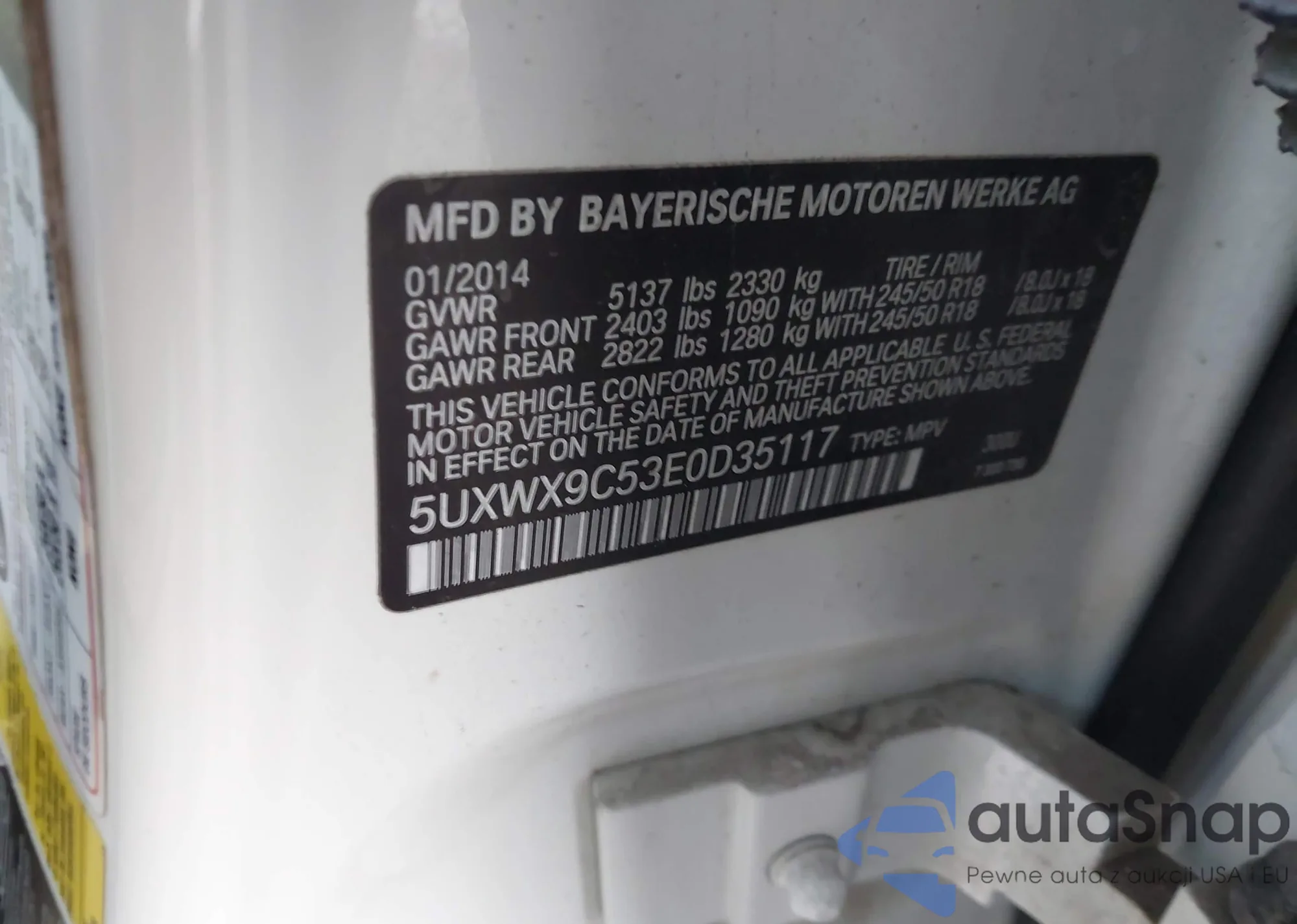• VIN 5UXWX9C53E0D35117