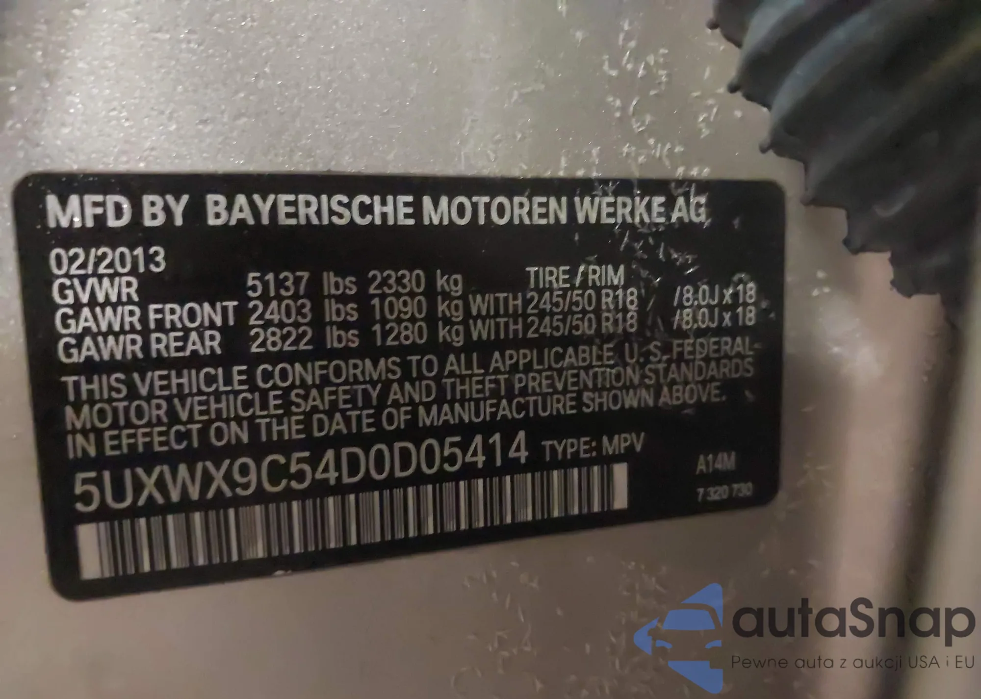 • VIN 5UXWX9C54D0D05414