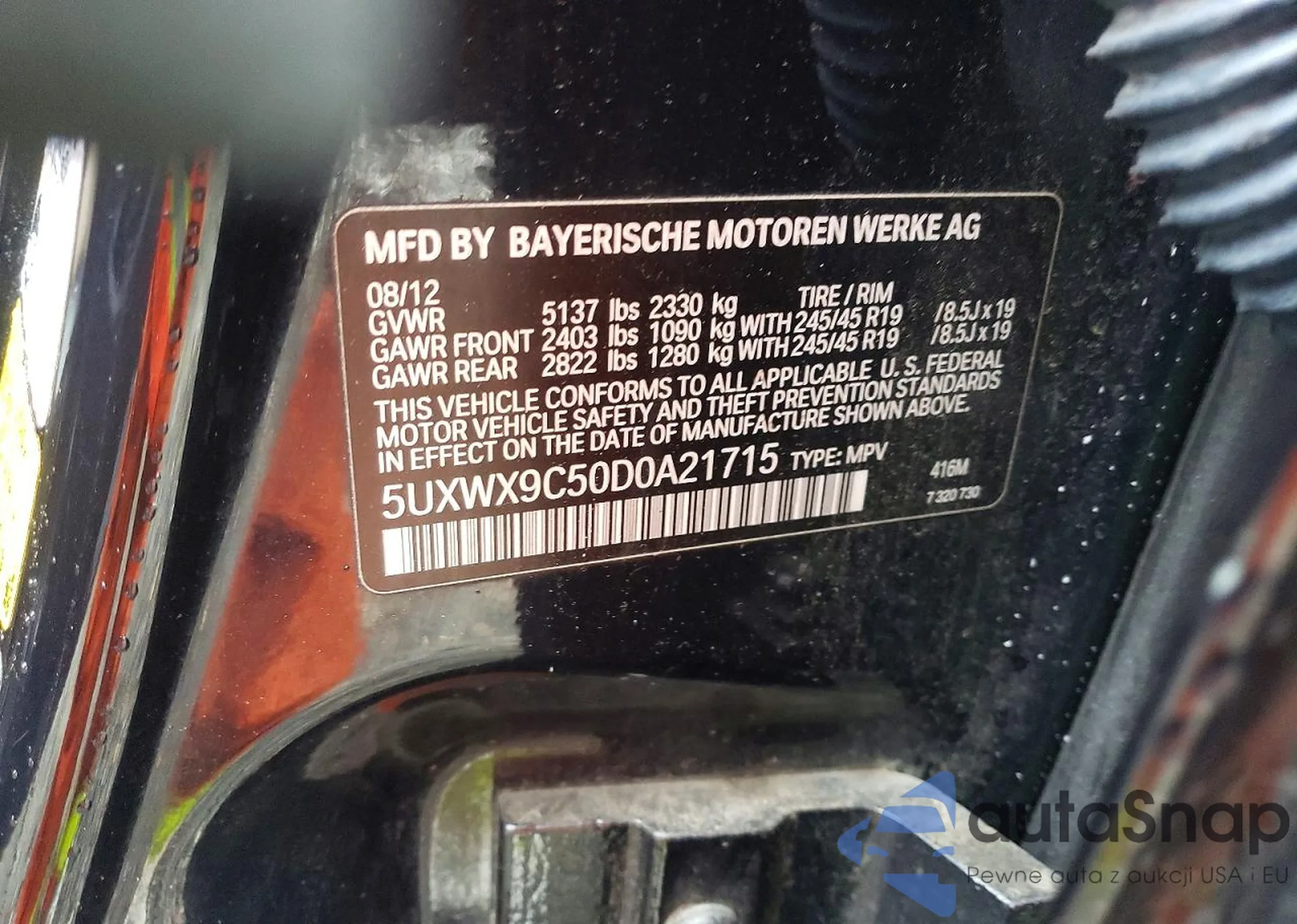 • VIN 5UXWX9C50D0A21715