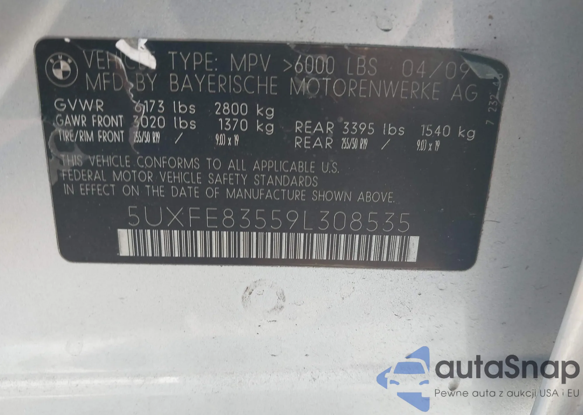 LOT: 43922451 VIN: 5UXFE83559L308535