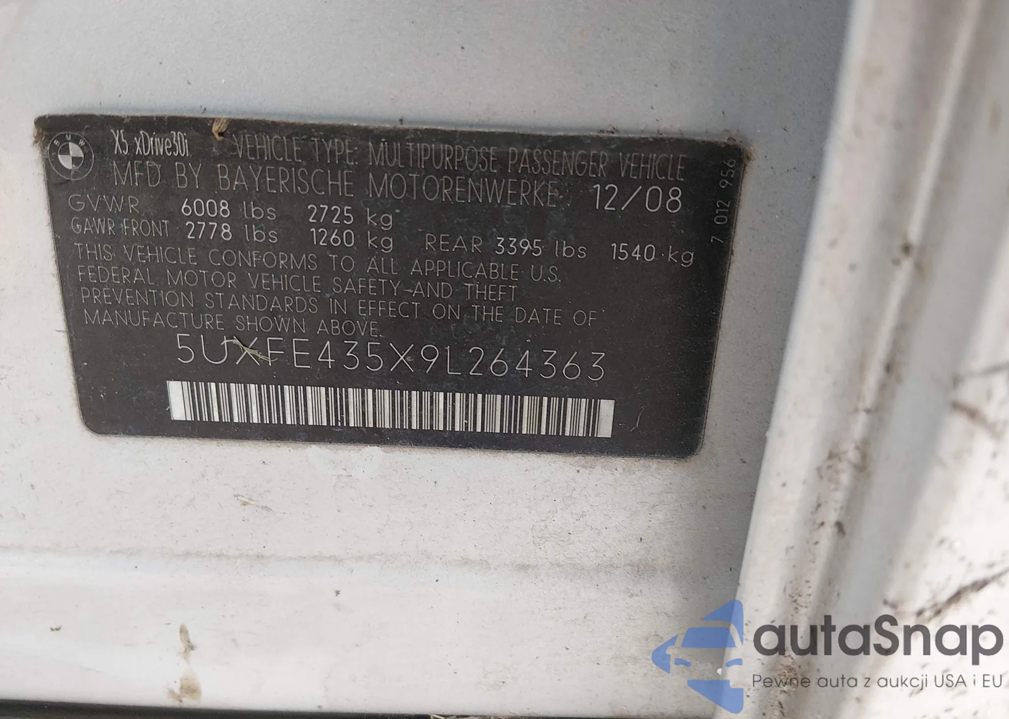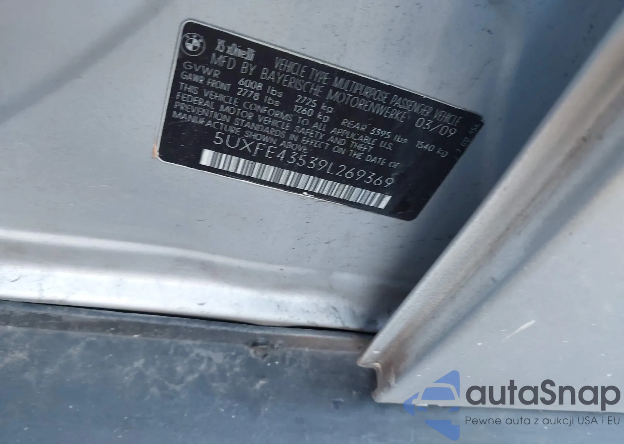 LOT: 43793034 VIN: 5UXFE43539L269369