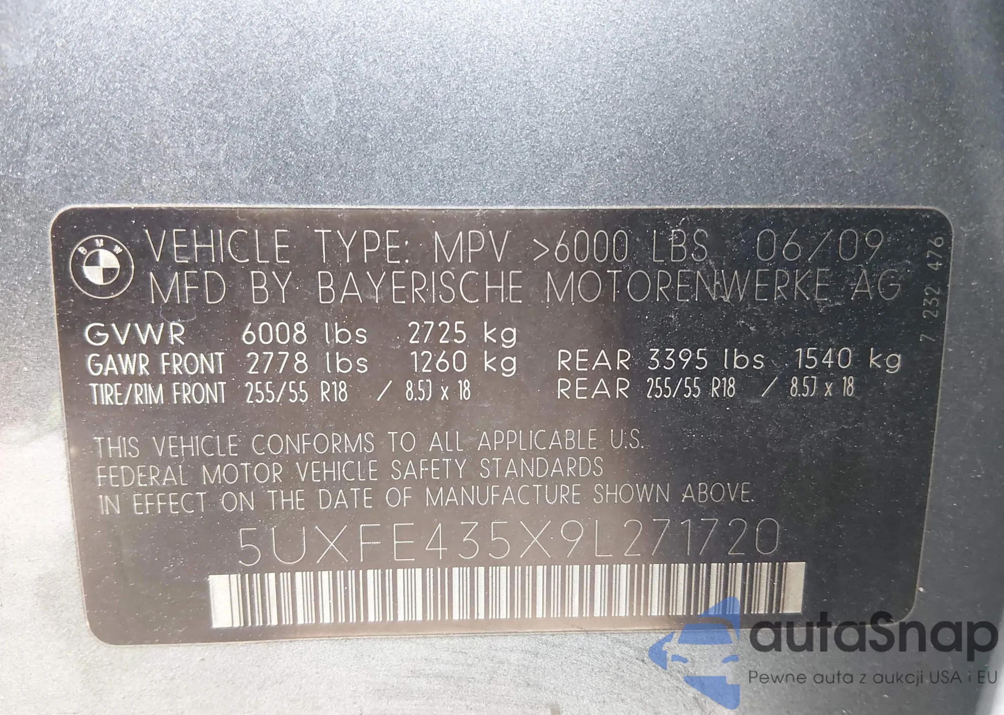 • VIN 5UXFE435X9L271720