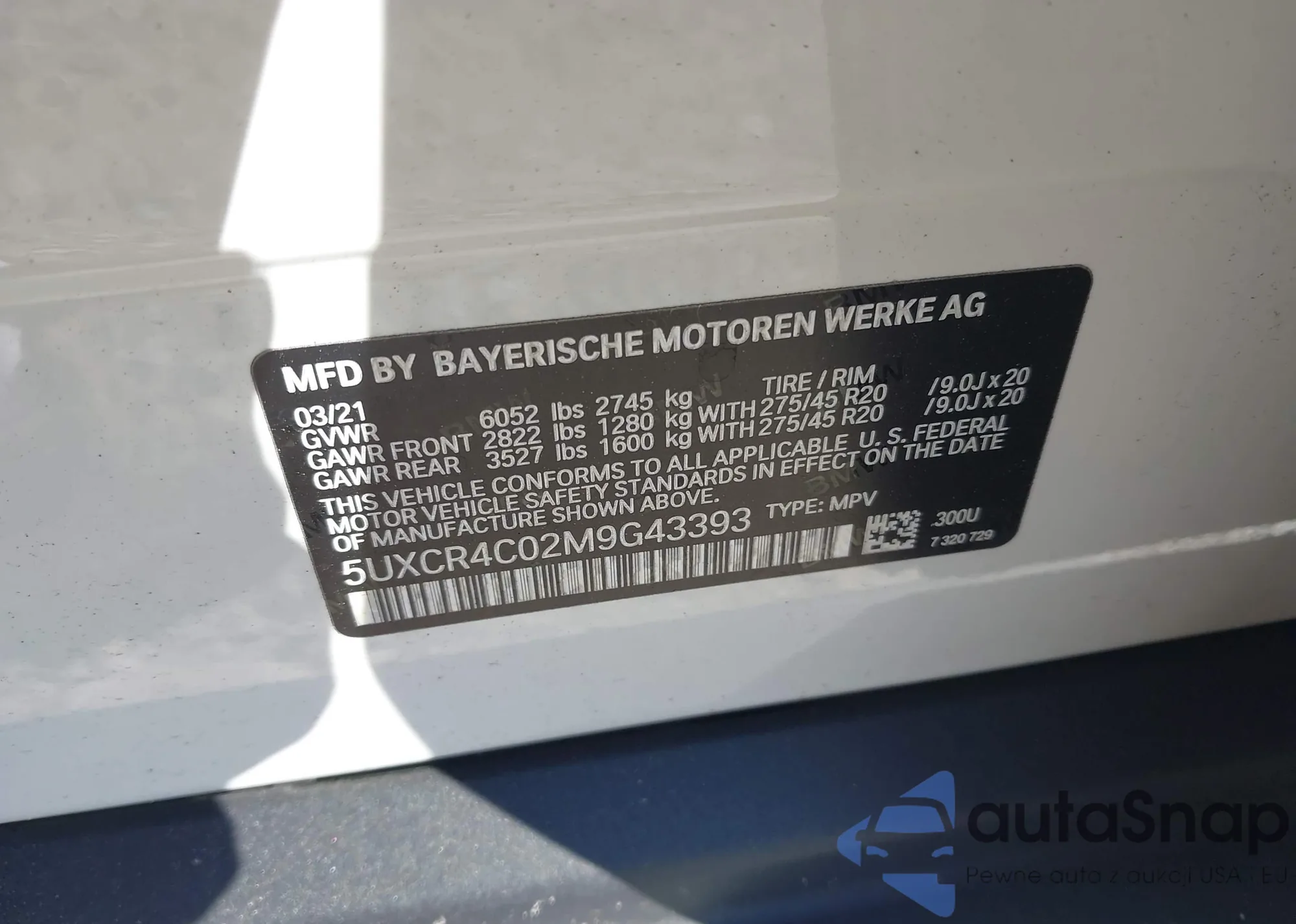 LOT: 43478235 VIN: 5UXCR4C02M9G43393