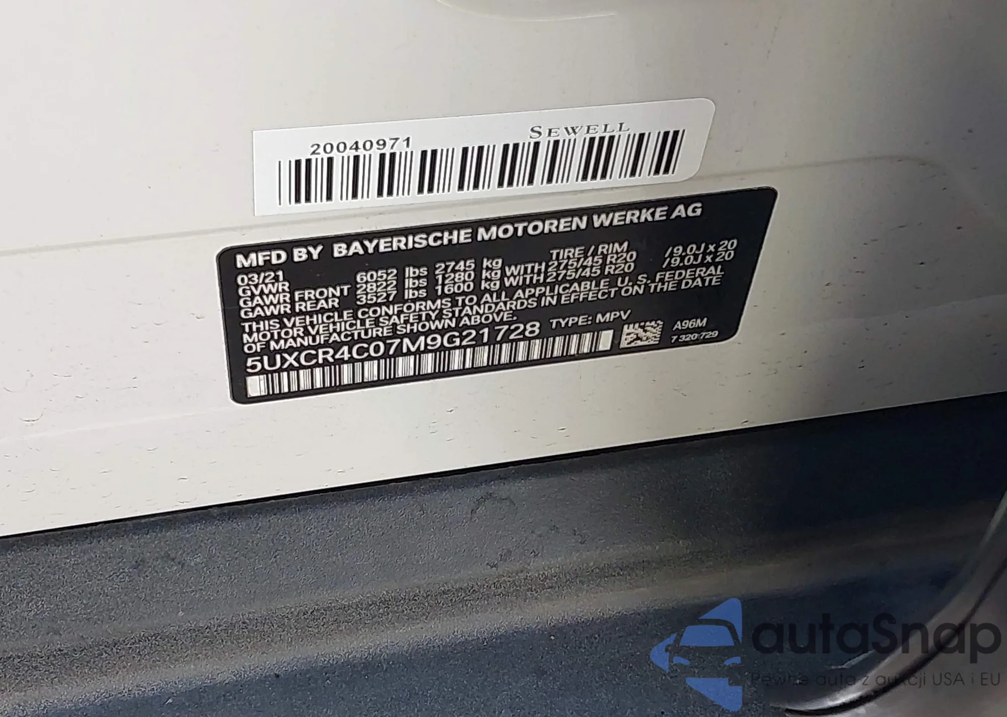 LOT: 43995408 VIN: 5UXCR4C07M9G21728