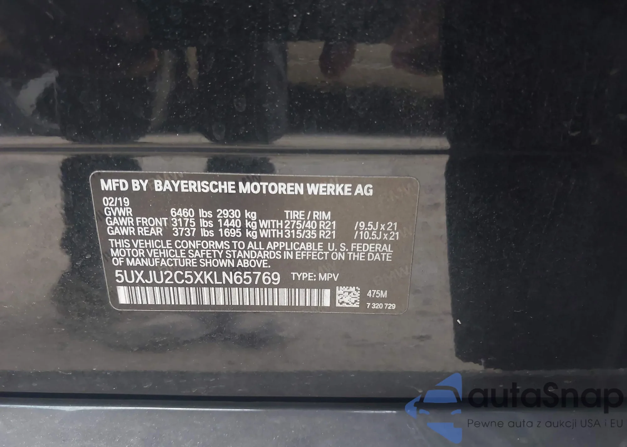 • VIN 5UXJU2C5XKLN65769