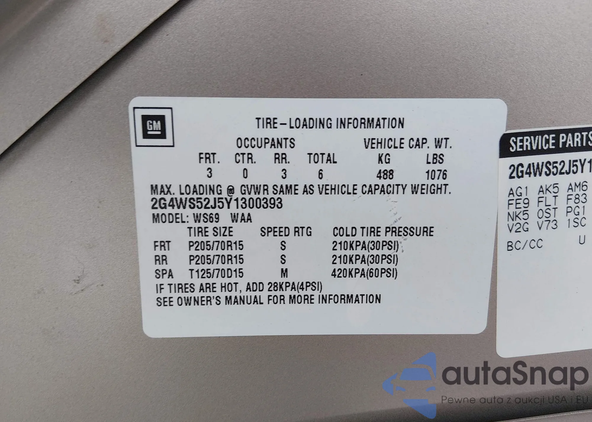 • VIN 2G4WS52J5Y1300393