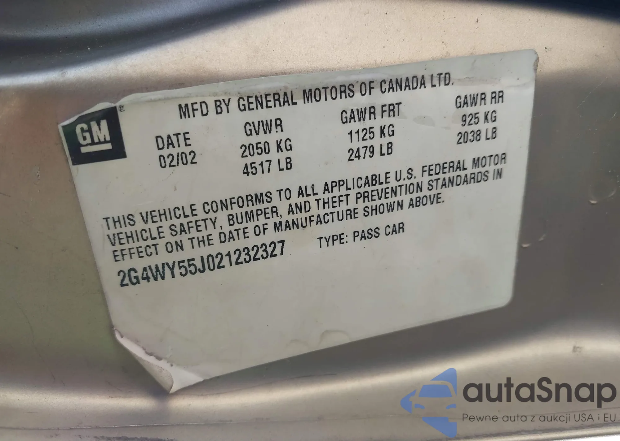 • VIN 2G4WY55J021232327