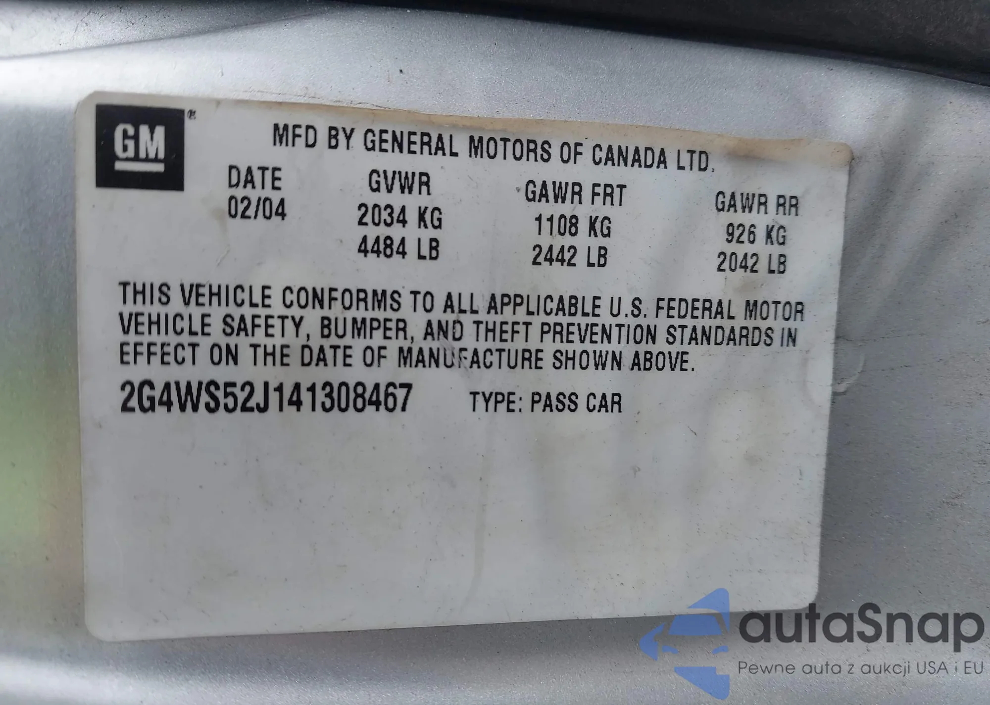 LOT: 44327401 VIN: 2G4WS52J141308467