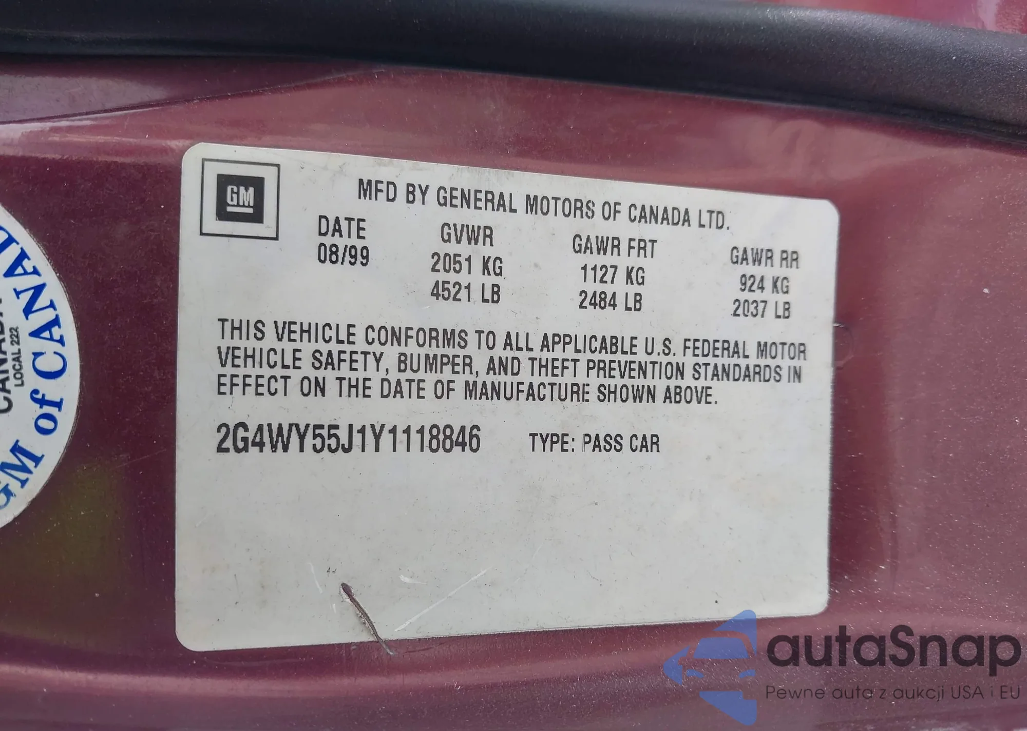• VIN 2G4WY55J1Y1118846