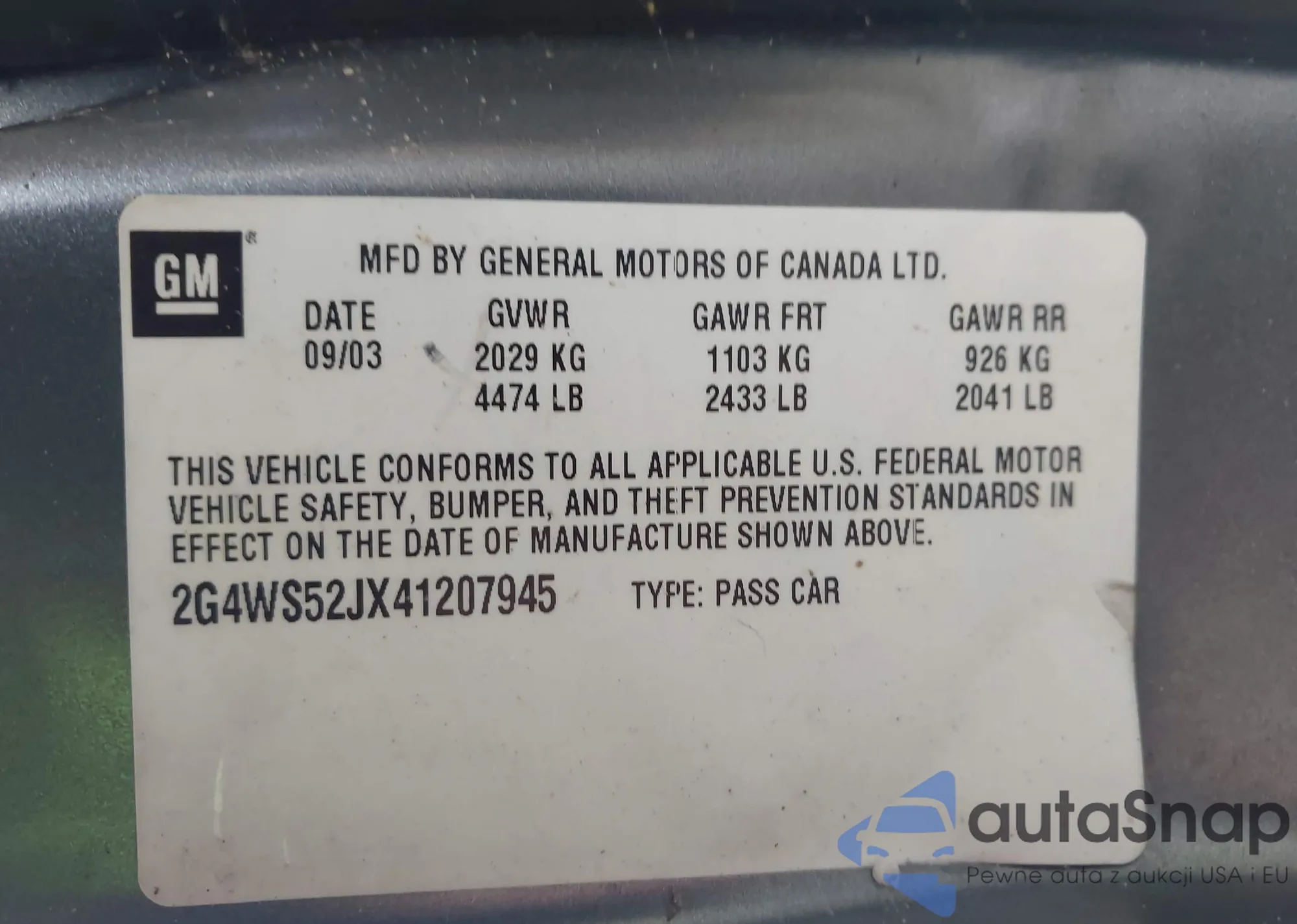 LOT: 43369112 VIN: 2G4WS52JX41207945