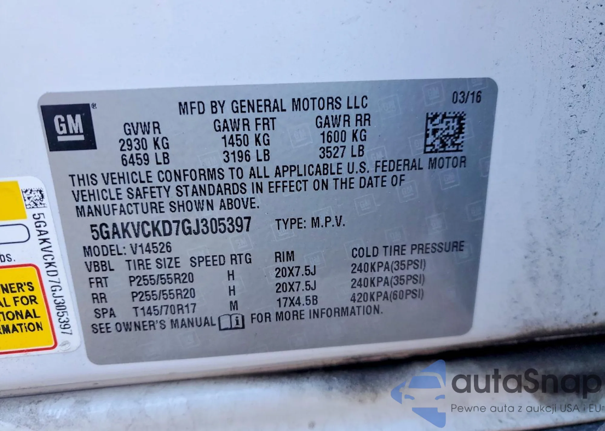 • VIN 5GAKVCKD7GJ305397