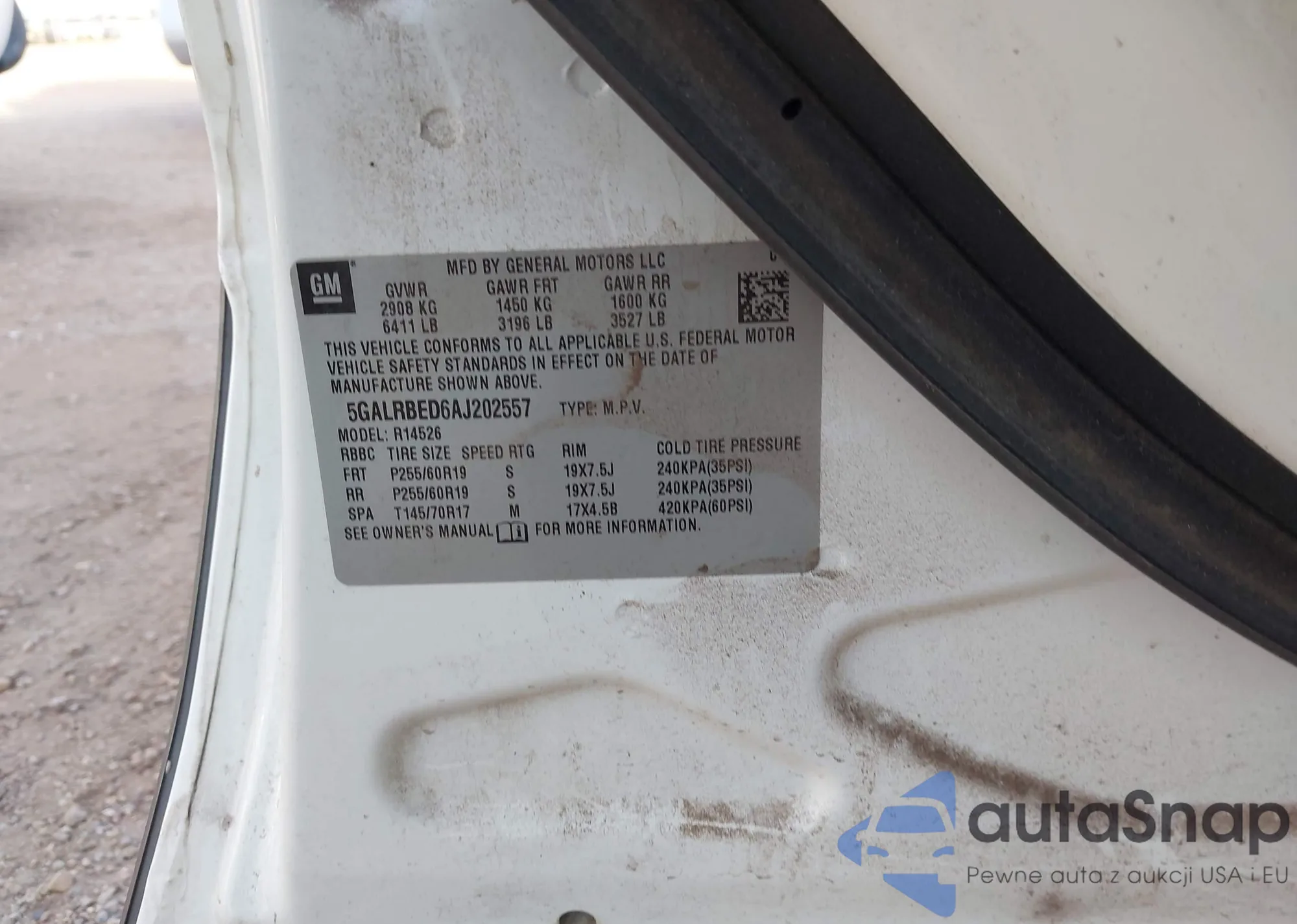 LOT: 44085661 VIN: 5GALRBED6AJ202557