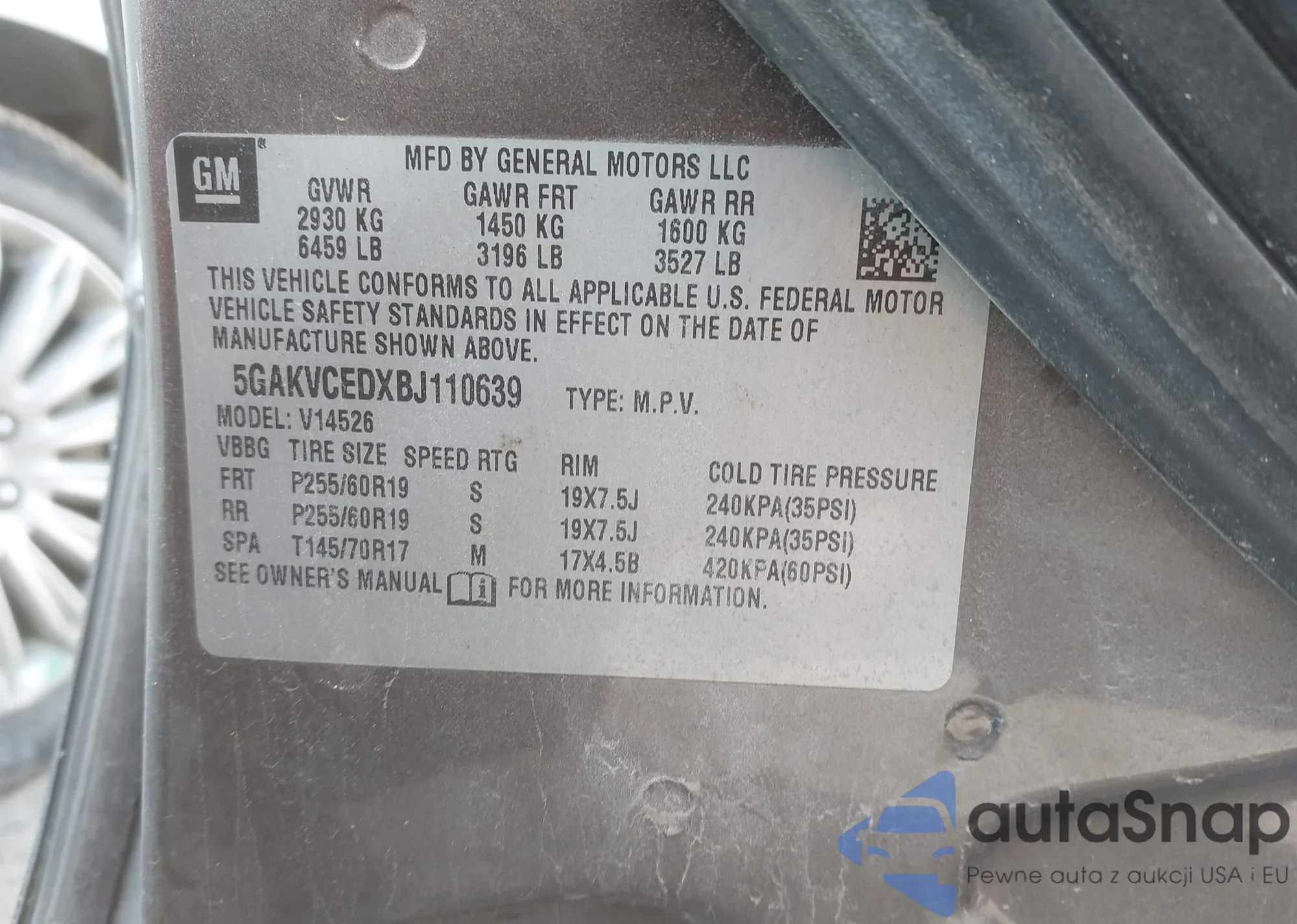 • VIN 5GAKVCEDXBJ110639