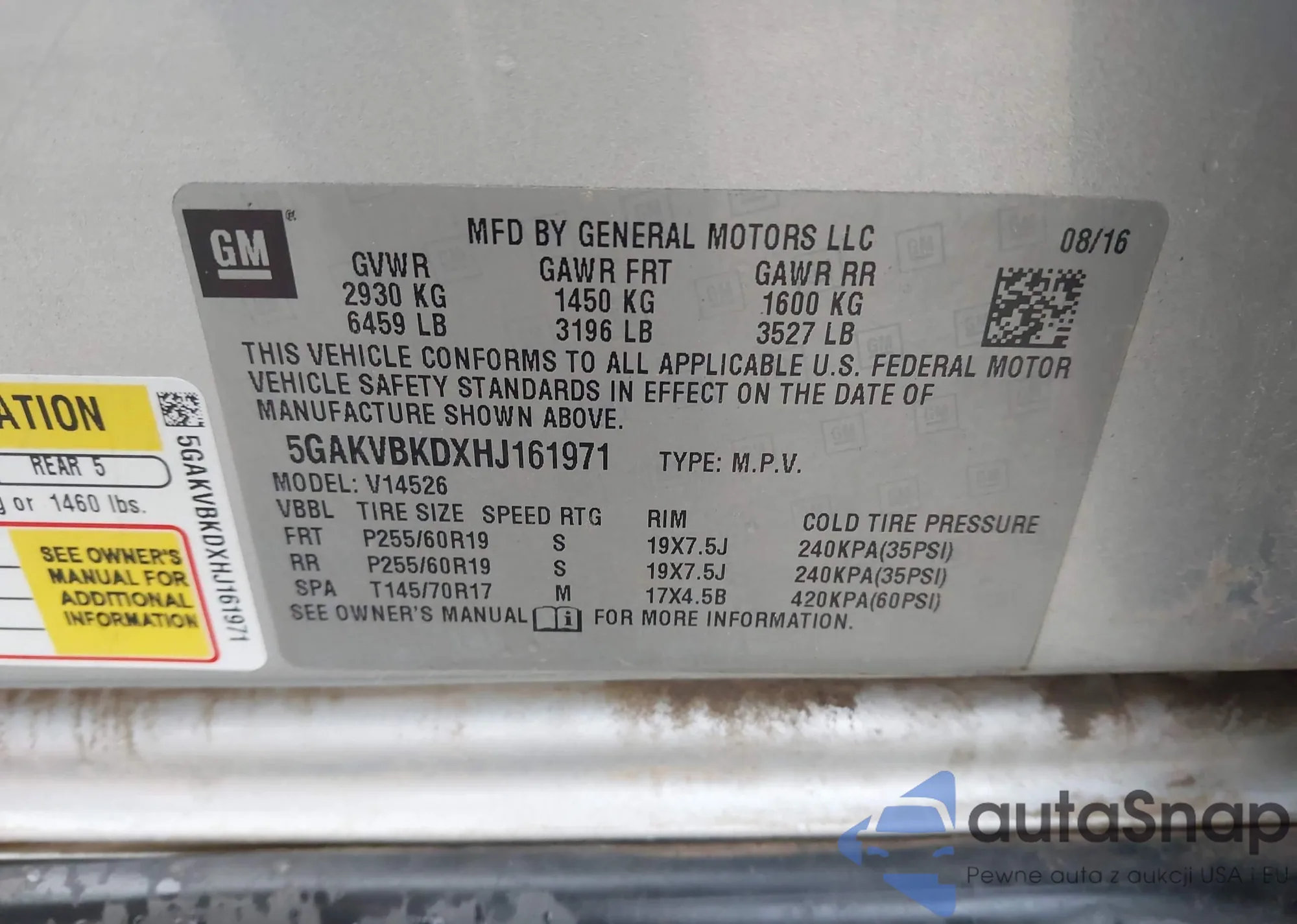• VIN 5GAKVBKDXHJ161971