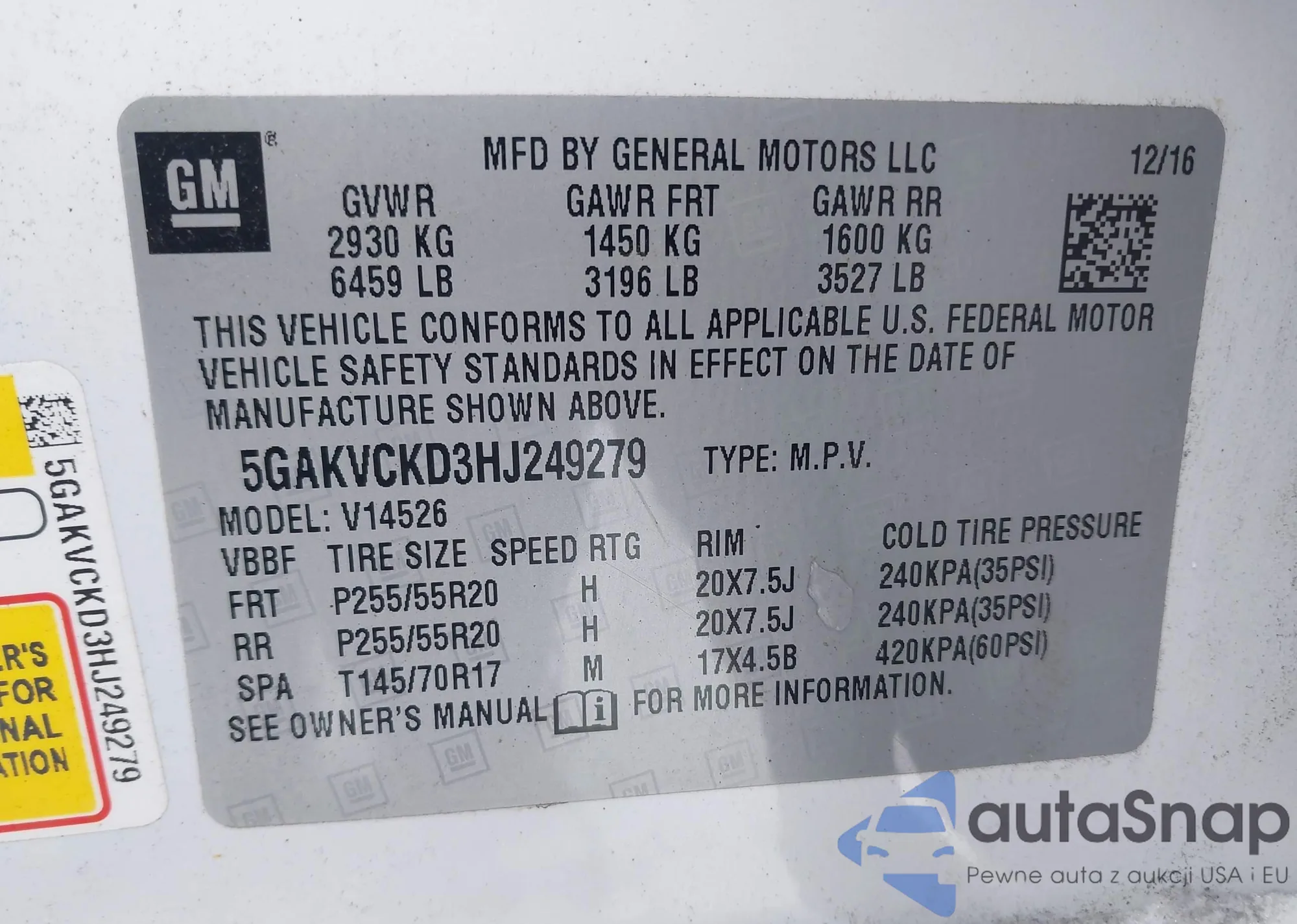 • VIN 5GAKVCKD3HJ249279