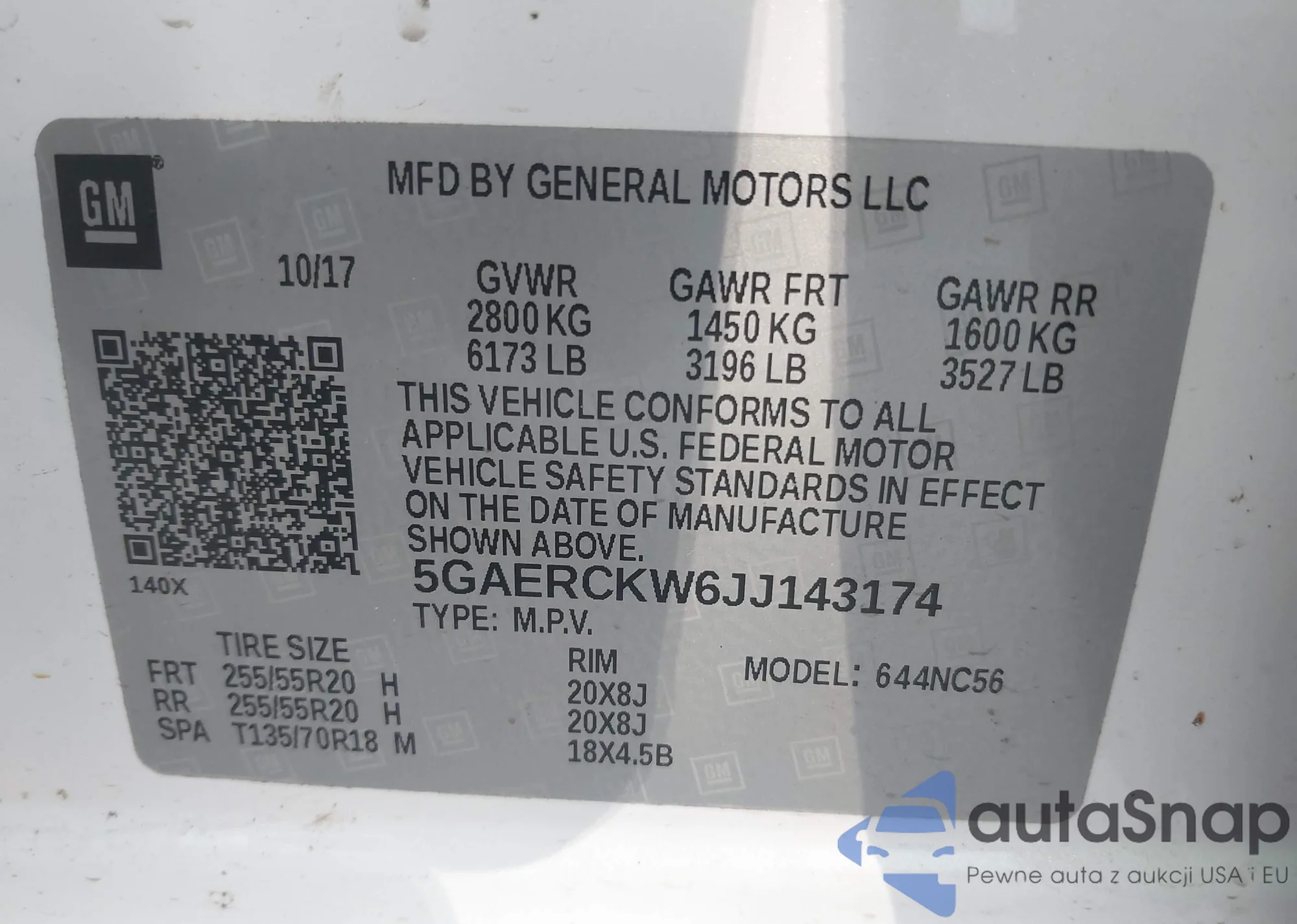 LOT: 44185280 VIN: 5GAERCKW6JJ143174