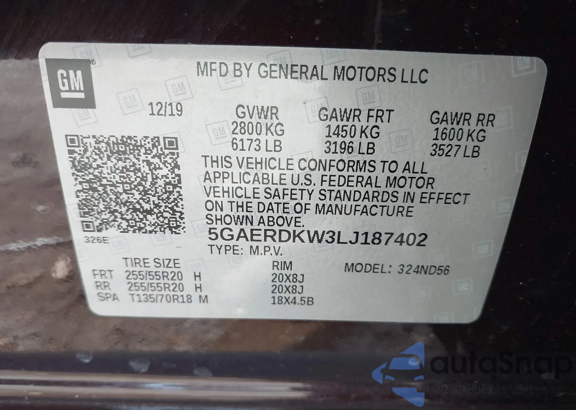 • VIN 5GAERDKW3LJ187402