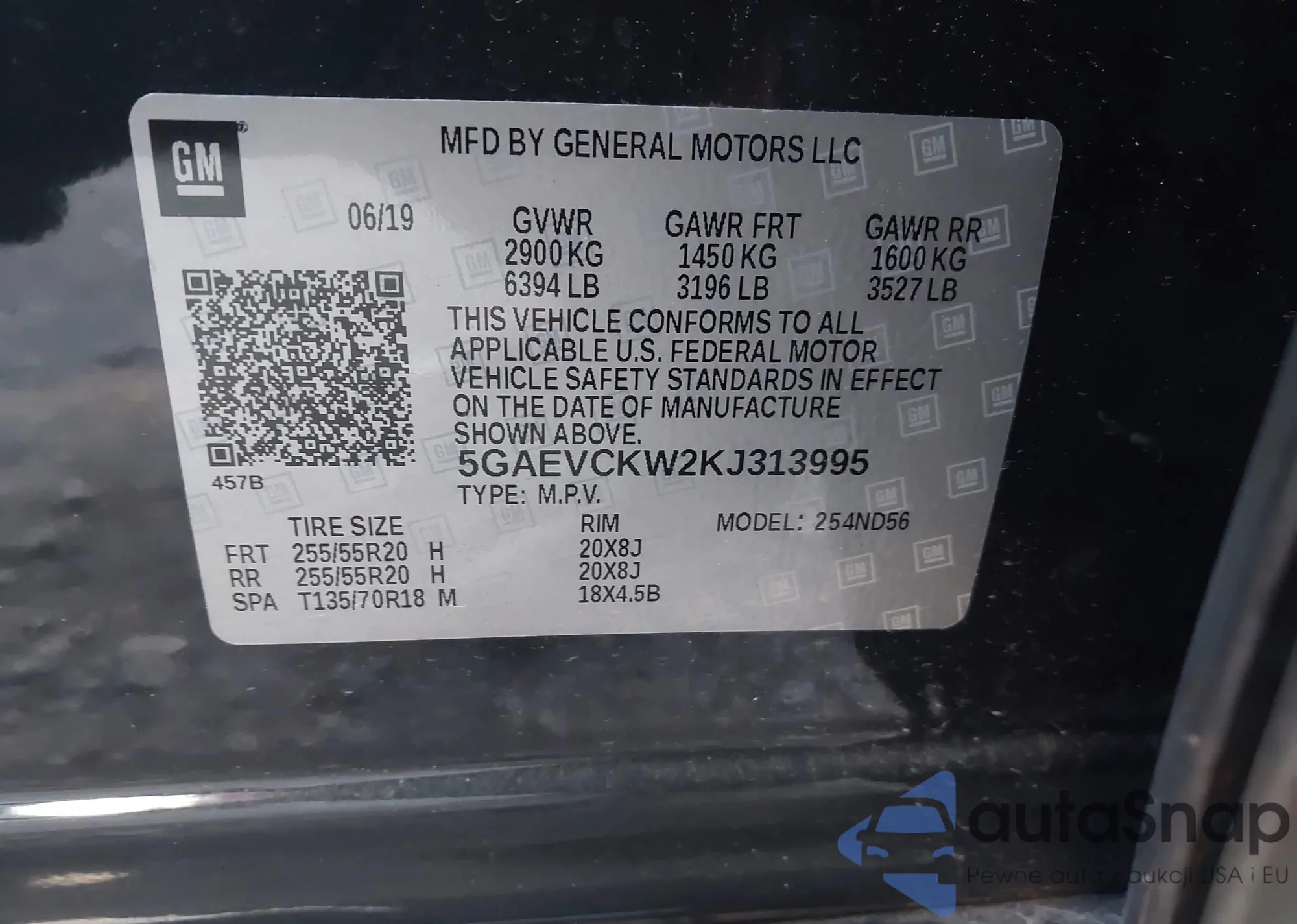 LOT: 44192509 VIN: 5GAEVCKW2KJ313995